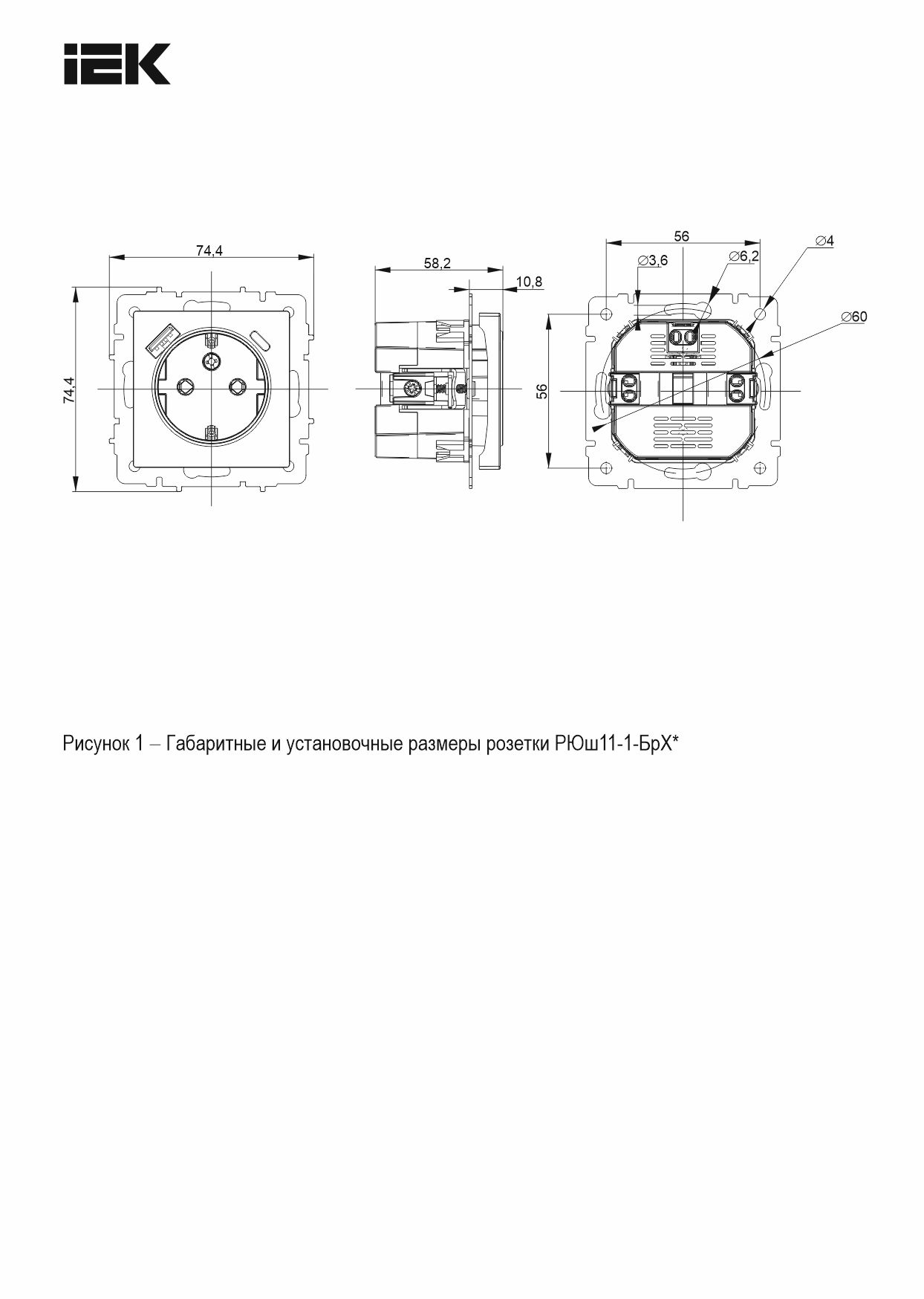 Жерлендіру және қорғаныш жапқыштары бар бір банды розетка 16А с USB A+C 18Вт РЮш11-1-БрЧ қара ИЭК