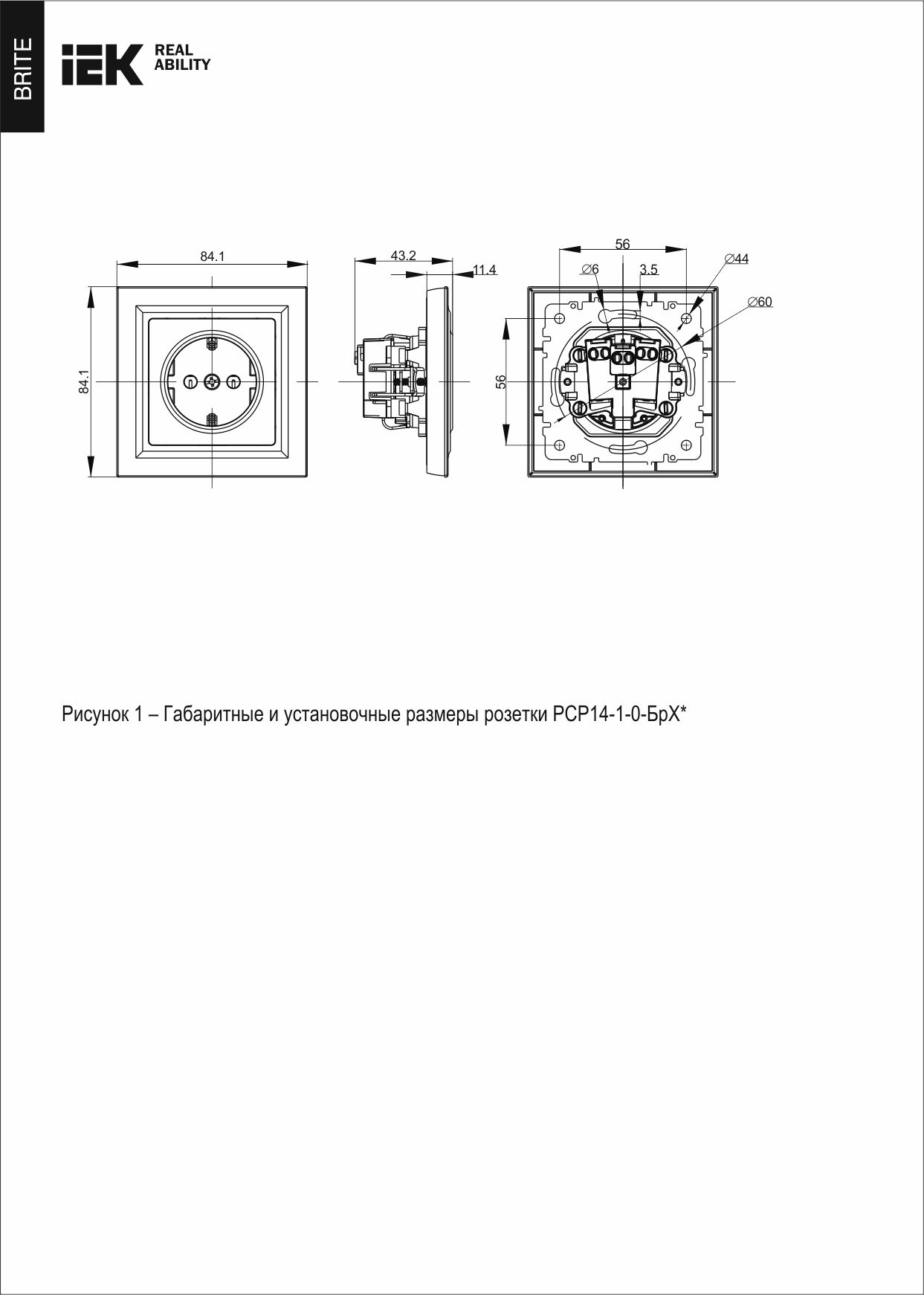 BRITE Розетка 1 орынды қорғаныс перделері бар, жерге тұйықталған 16А РСР14-1-0 жинақта БрБ ақ ИЭК