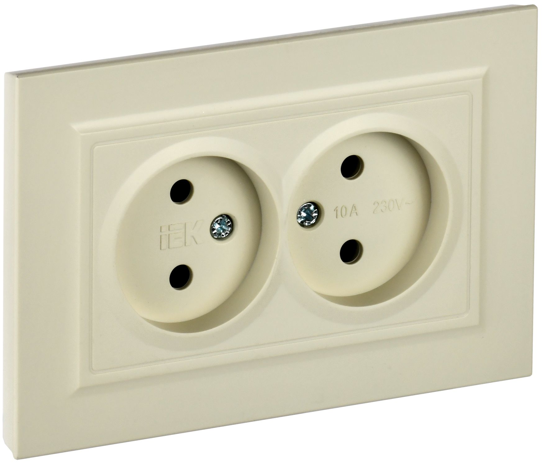 BRITE розеткасы, 2 орынды, жерге тұйықталусыз, қорғаныс перделері жоқ 10А жиынтықта, РС12-2-БрКр, сарғыш ИЭК