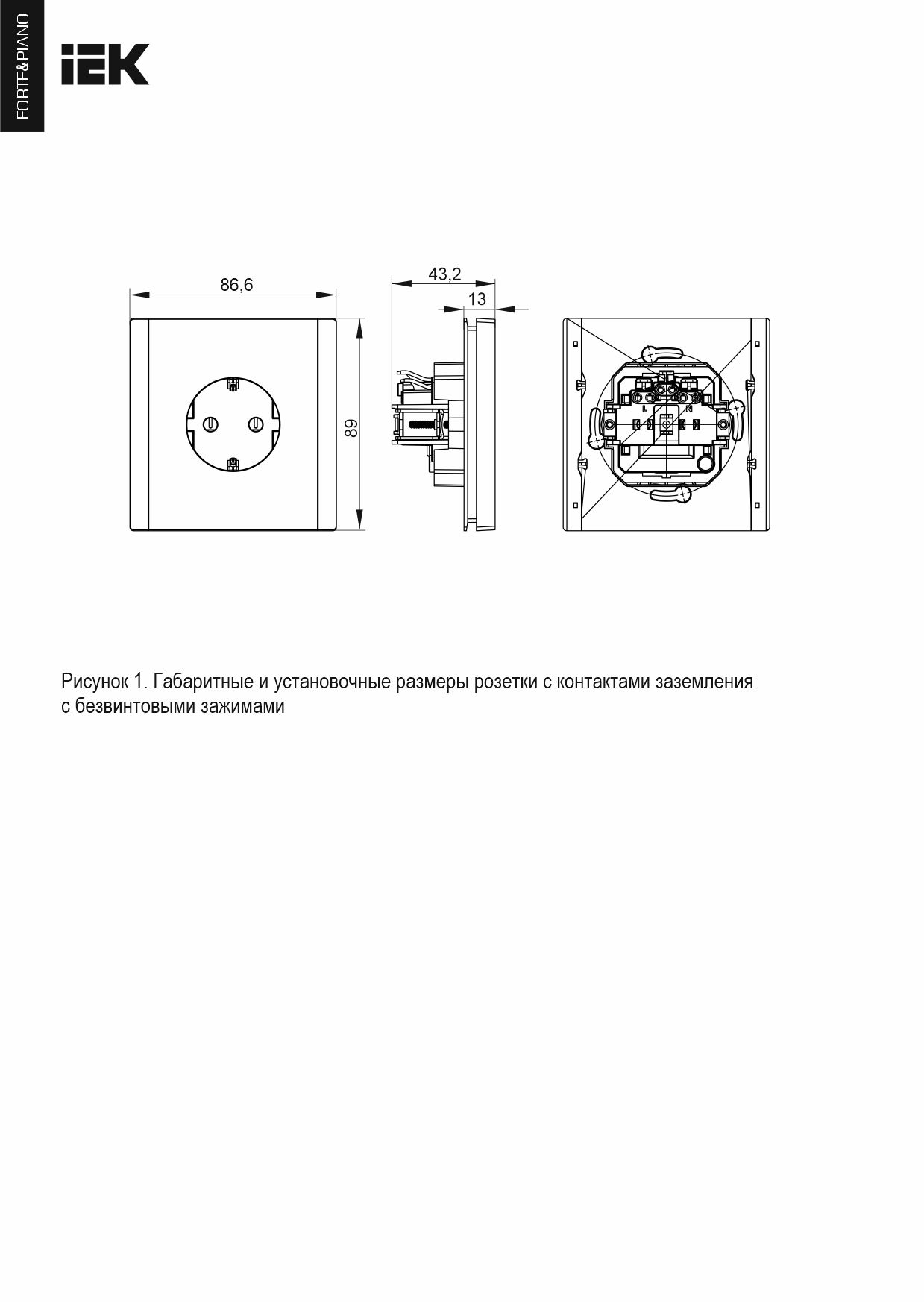 FORTE&PIANO Розетка 1 орынды, жерге тұйықталумен, пердешелерсіз, бұрандасыз бекіту 16А FP414 ваниль ИЭК