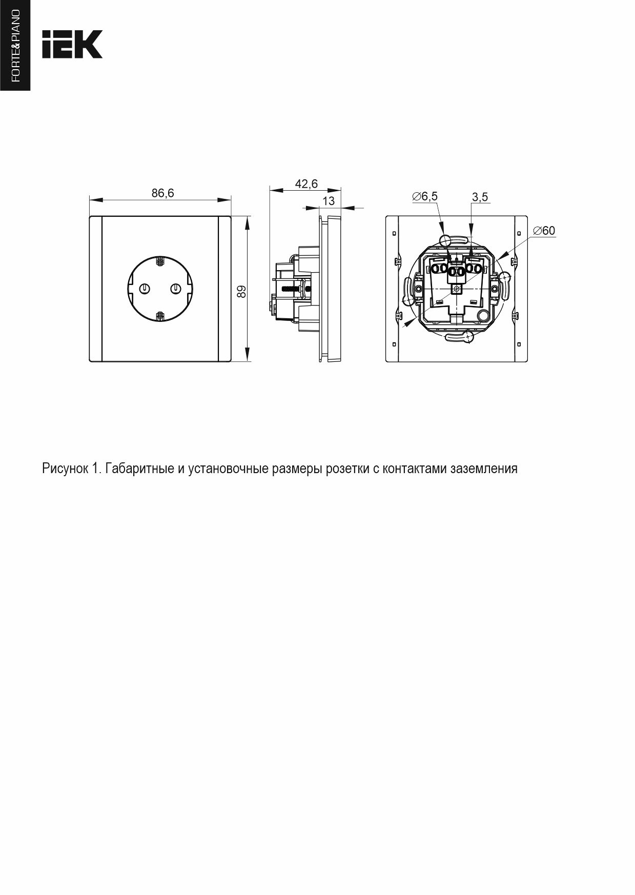 FORTE&PIANO Розетка 1 орынды, жерге тұйықталған, қорғаныс пердешелерімен, бұрандалы бекіту 16А FP115 қара IEK