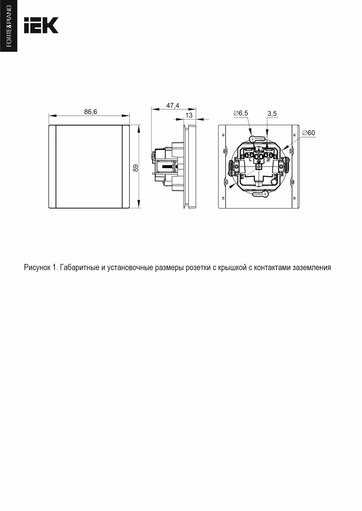 FORTE&PIANO Розетка 1 орынды, жерге тұйықталған, қорғаныс пердешелерімен, бұрандалы бекіту 16А FP221 ақ ИЭК
