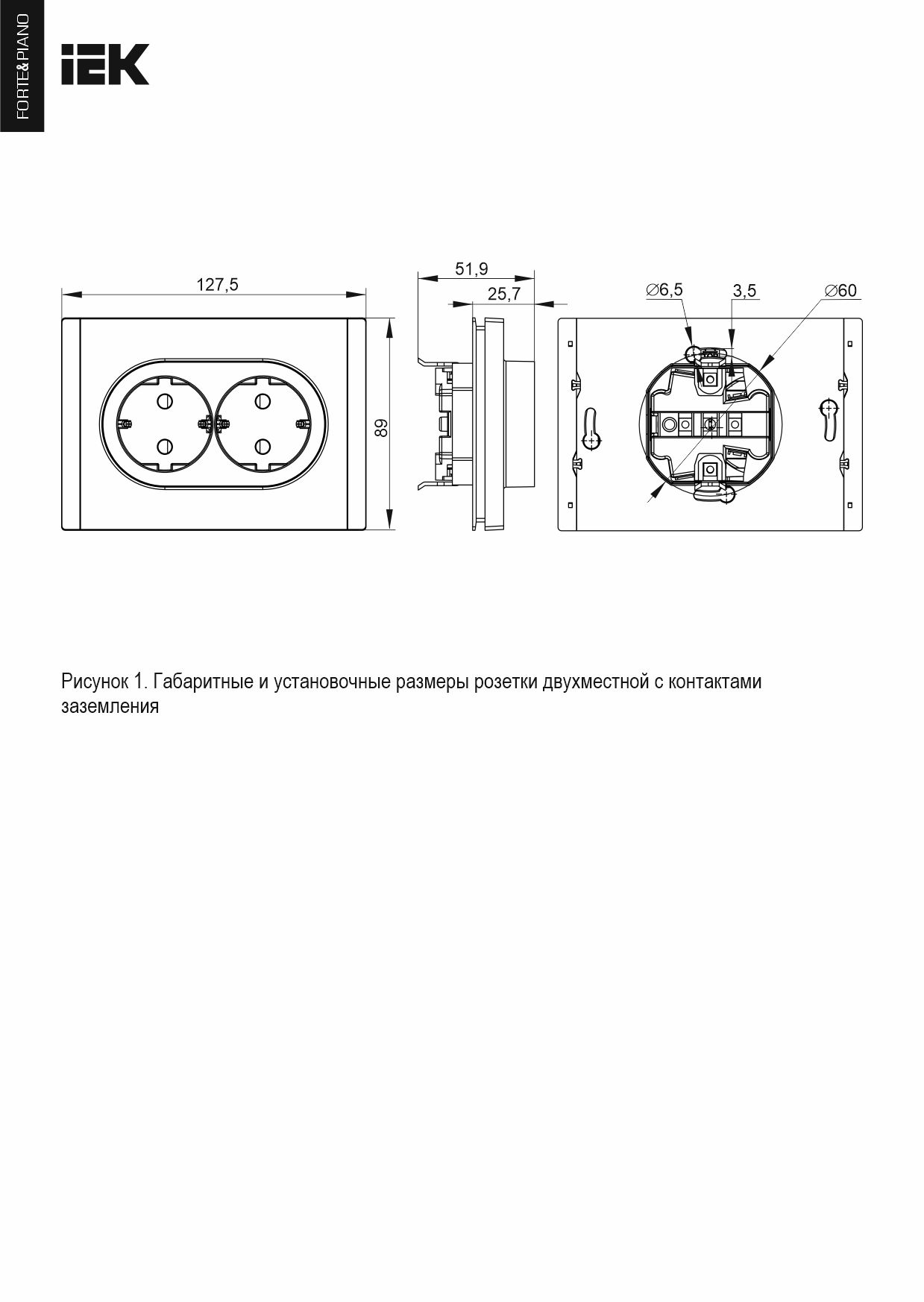 FORTE&PIANO Розетка 2 орынды, жерге тұйықталған, қорғаныс пердешелерсіз, бұрандасыз бекіту 16АFP524 болат ИЭК