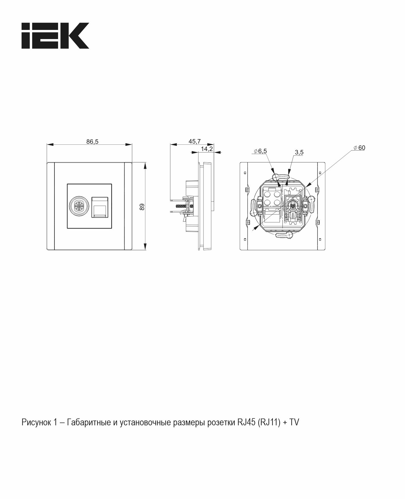 FORTE&PIANO 2 ұялы розетка TV+RJ45 категориялы 5E FP136 қара ИЭК
