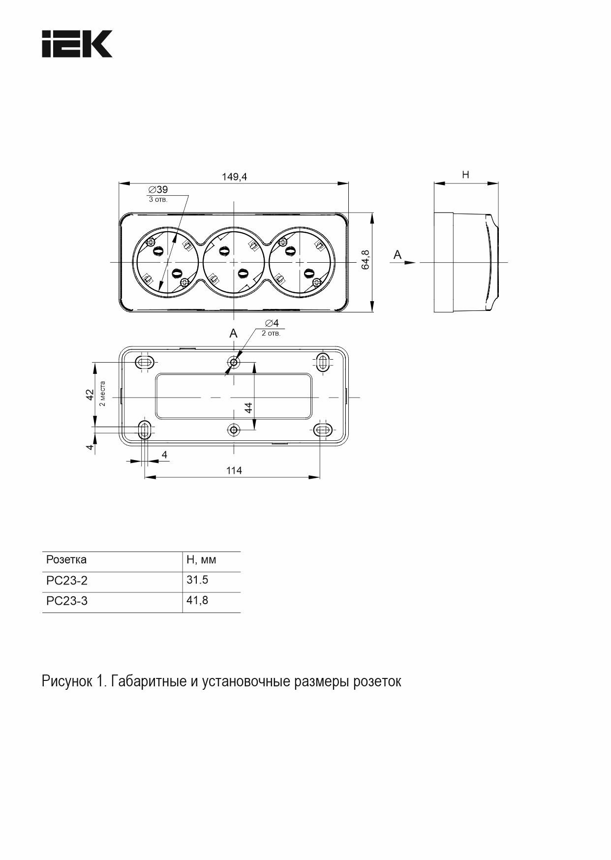 GLORY Розетка 3 орынды, ашық орнатуға арналған, жерге тұйықталмаған, қорғаныс пердешелерсіз 10А РС23-2-ХС қарағай IEK