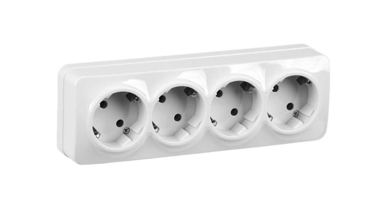 GLORY Розетка 4 орынды, ашық орнатуға арналған, жерге тұйықталған, қорғаныс пердешелерсіз 16А РС24-3-ХБ ақ IEK