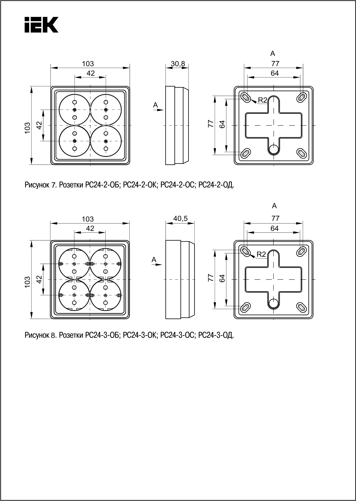 OKTAVA Розетка 4 орынды, жерге тұйықталған, ашық орнатуға арналған 16А РС24-3-ОБ ақ IEK