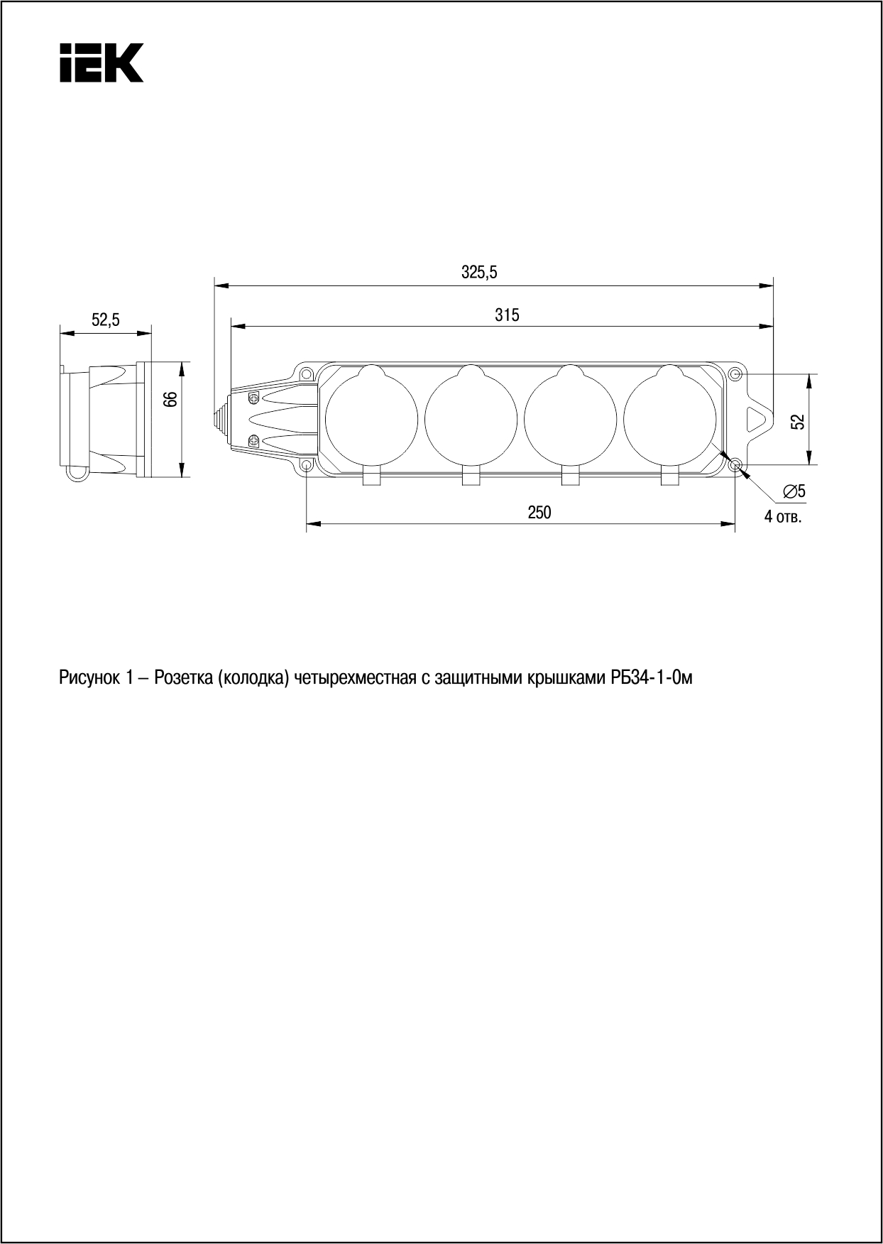 Розетка (қалып) 4 ұяшықты РБ34-1-0м қорғаныс қақпақтарымен IP44 ОМЕГА каучук IEK