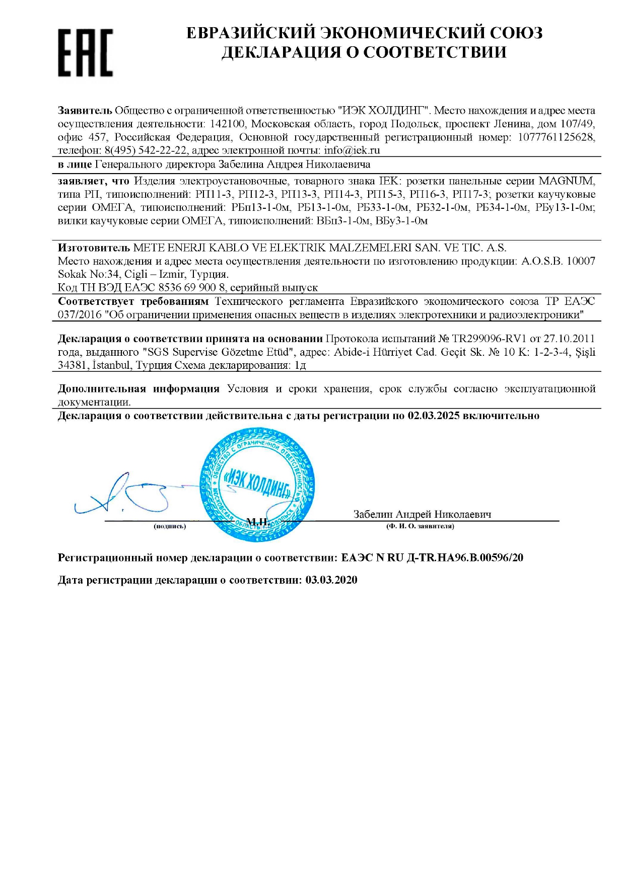 Розетка 3 ұялы қорғаныс қақпағы бар ОМЕГА IP44 РБ33-1-0м ИЭК