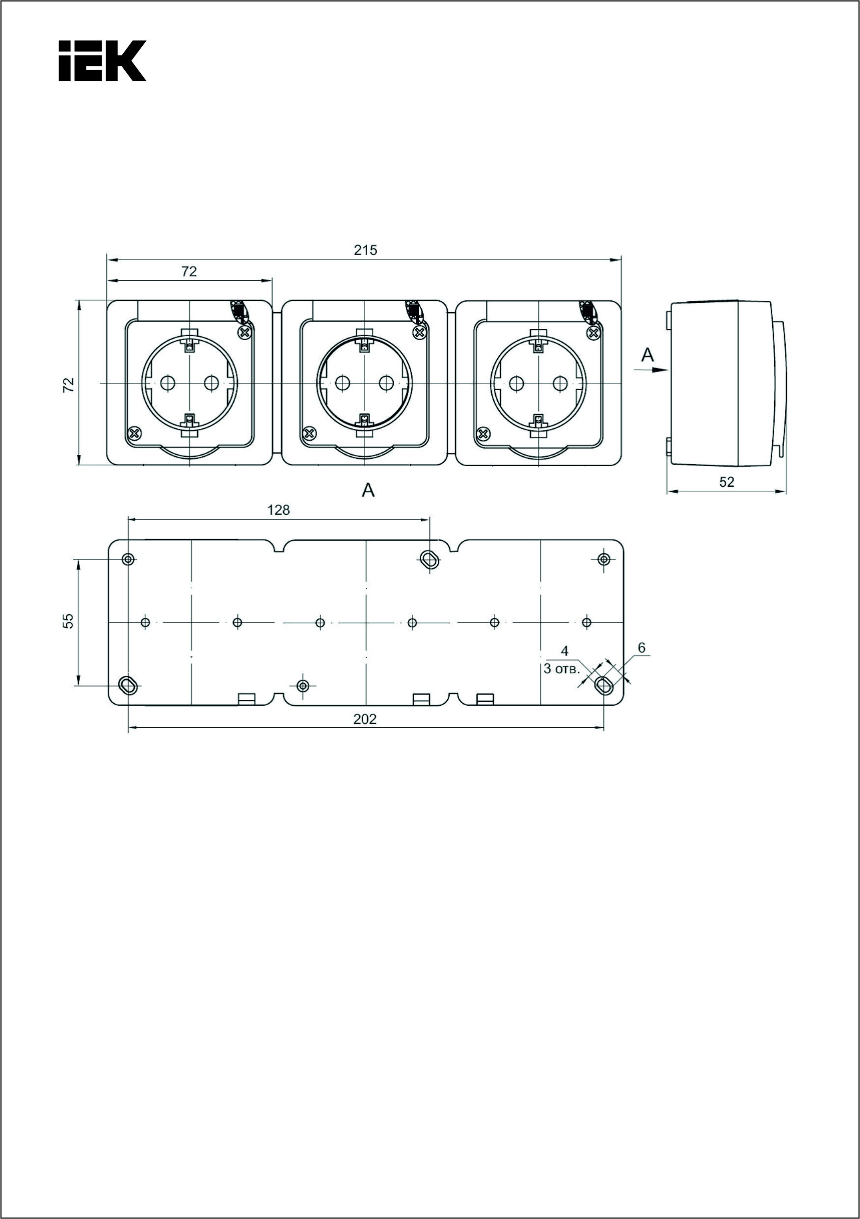РСб23-3-ГПБд розетка, 3 нүктелі, ашық орнатуға арналған, жерге тұйықталатын контактісімен IP54 (мұнарлы) ИЭК