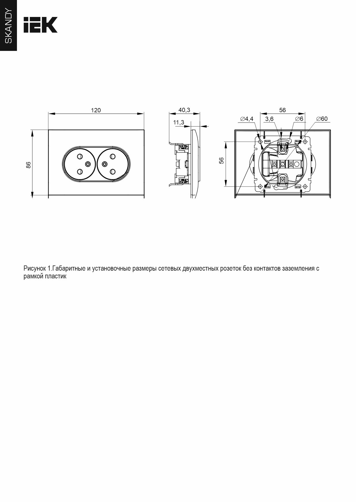 SKANDY Розетка 2 орынды, жерге тұйықталмаған, қорғаныс пердешелерсіз 10А жиынтықта SK-R10G графит IEK