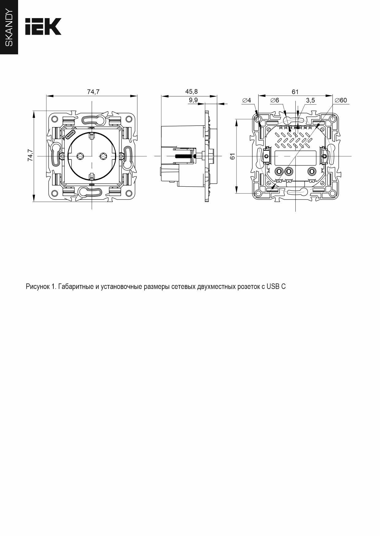 SKANDY Розетка 1 орынды, жерге тұйықталған, қорғаныс пердешелерімен 16А с USB C 18Вт SK-R17G графит IEK