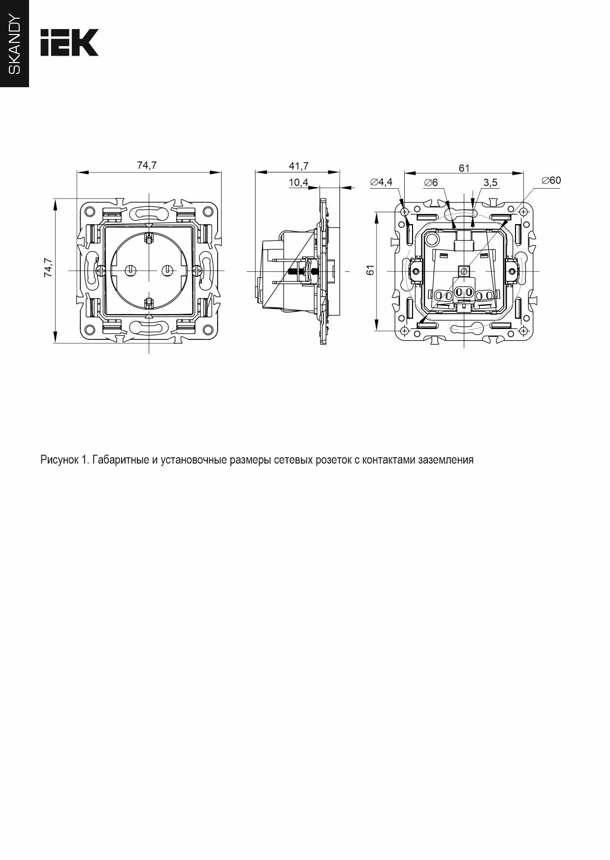 SKANDY Розетка 1 орынды, жерге тұйықталған, қорғаныс пердешелерімен 16А SK-R04W арктикалық ақ IEK