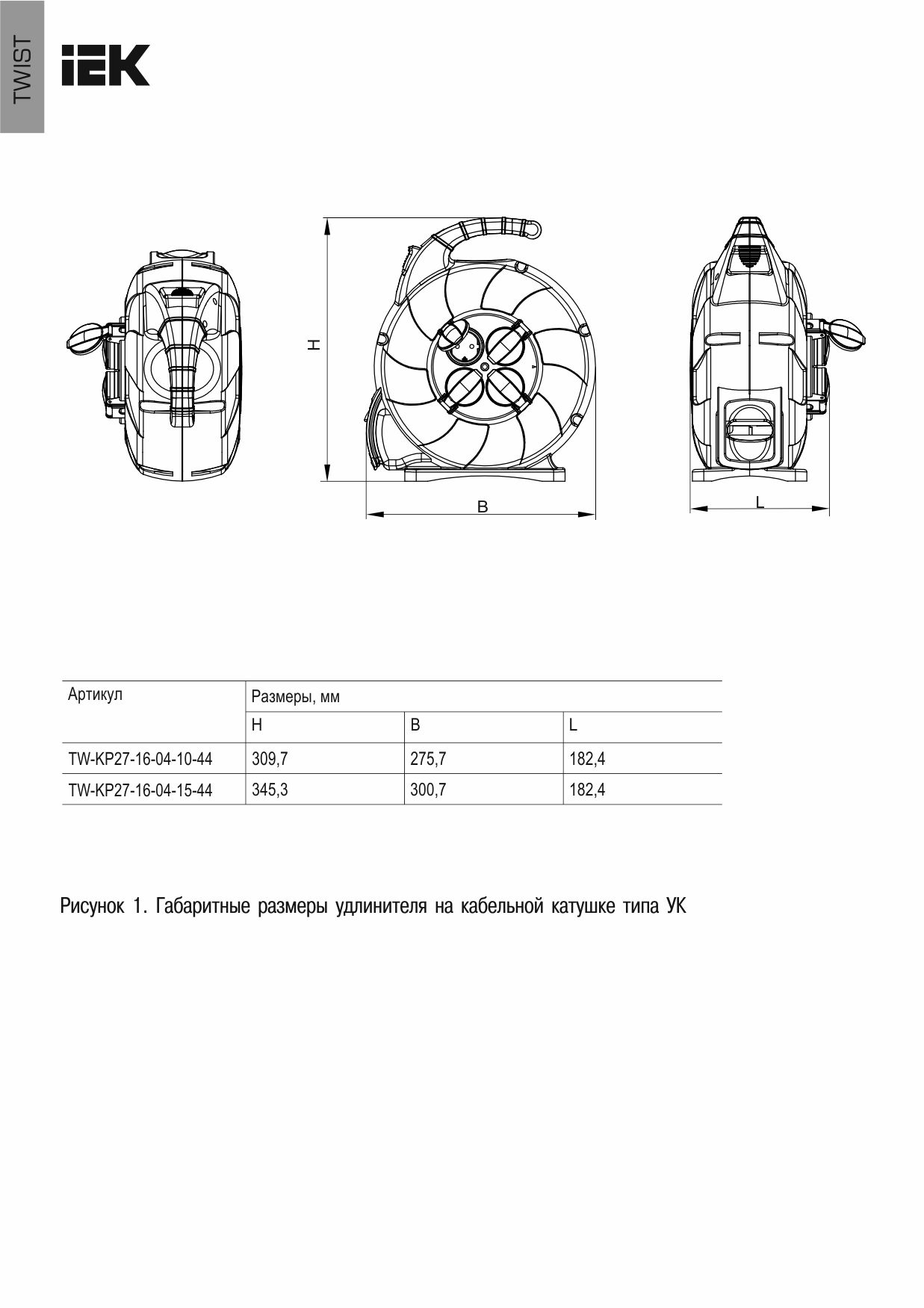 TWIST Орауыш УК10 4 орын IP44, жерге тұйықталған 3х1,5мм2 КГ кабельді автоматты түрде орау функциясы бар 10м IEK