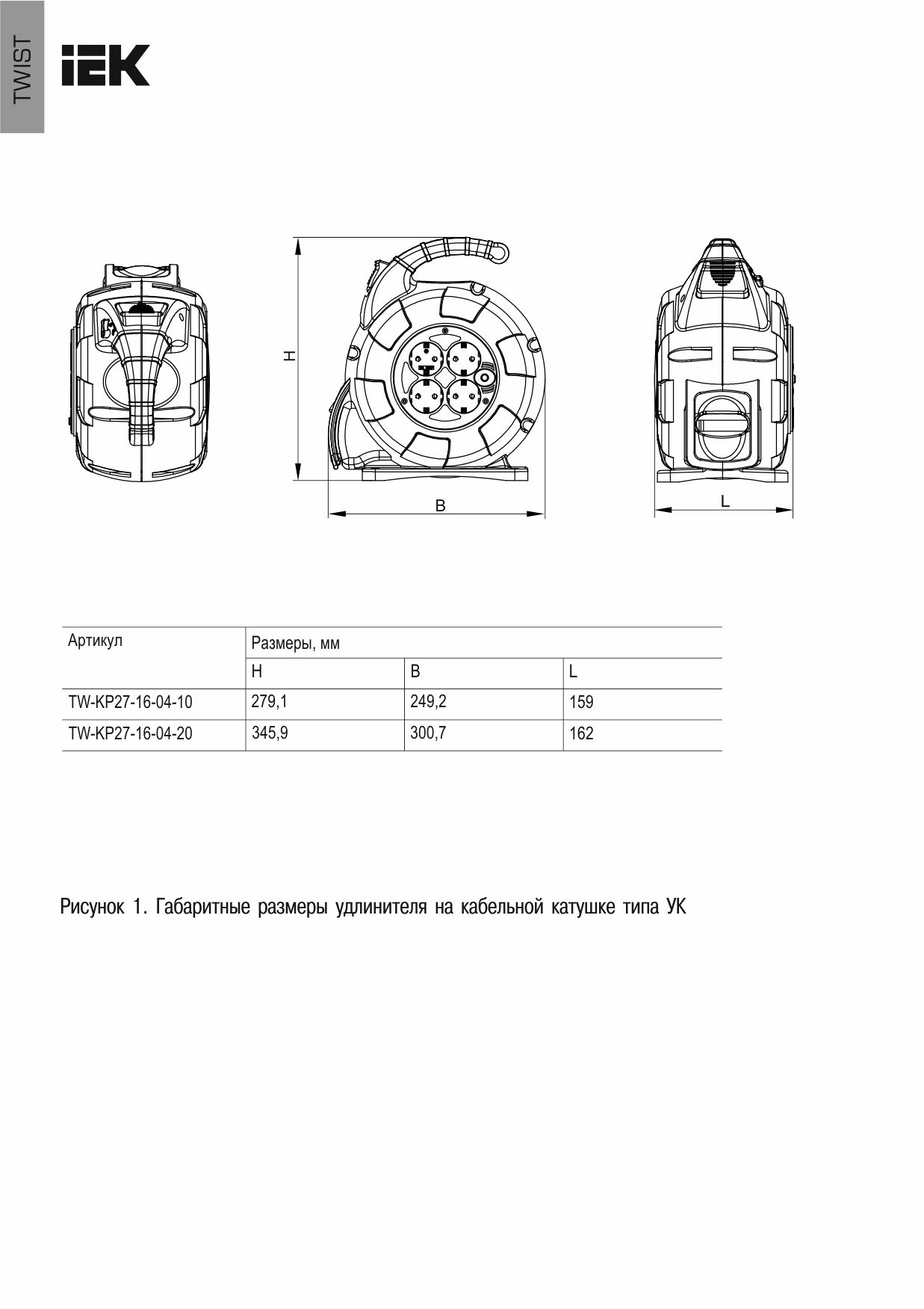TWIST Орауыш УК10 4 орын, жерге тұйықталған 3х1,5мм2 кабельді автоматты түрде орау функциясы бар 10м IEK