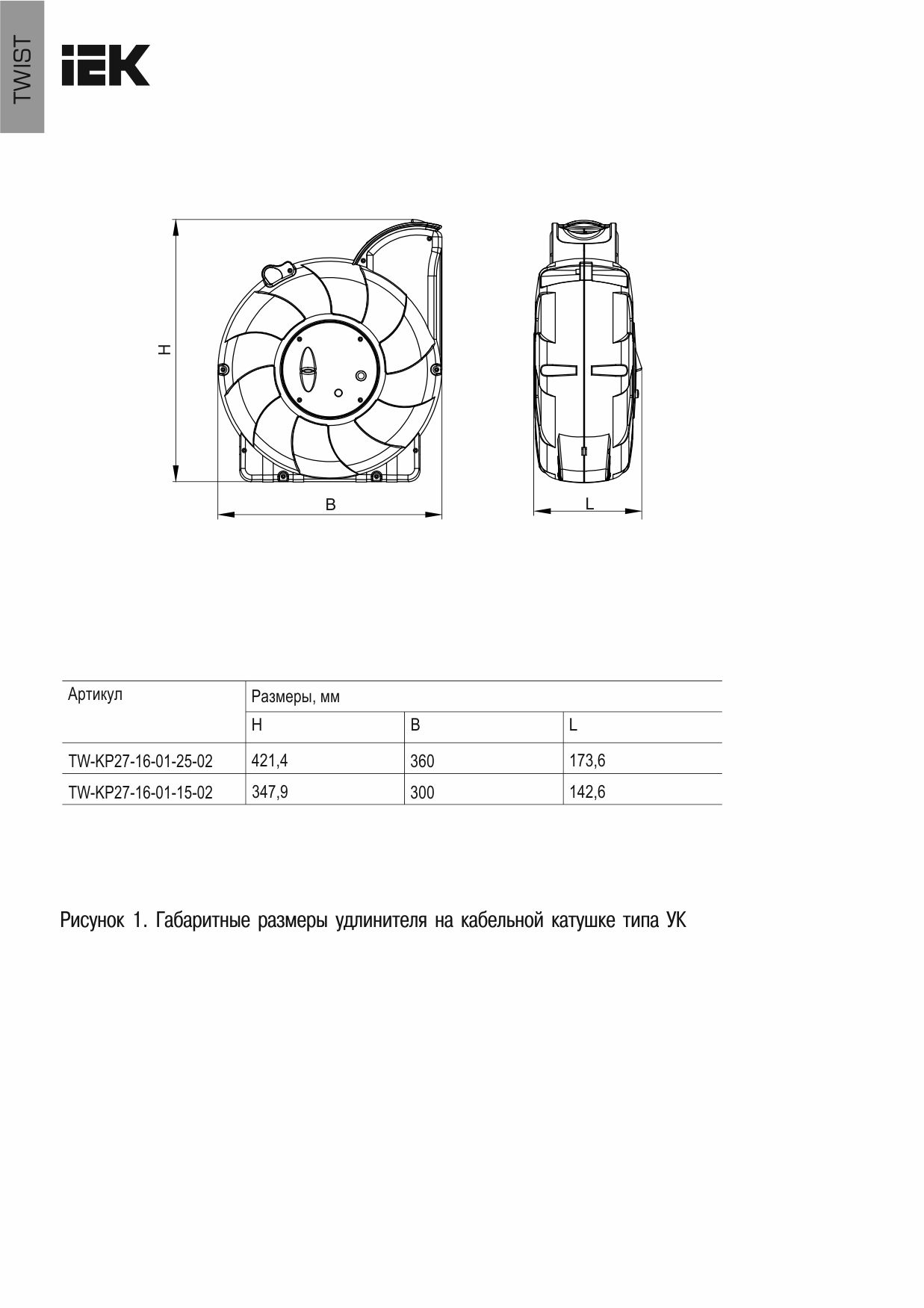 TWIST Орауыш УК15 1 орын, жерге тұйықталған 3х1,5мм2 кабельді автоматты түрде орау функциясы бар 15м+2м IEK