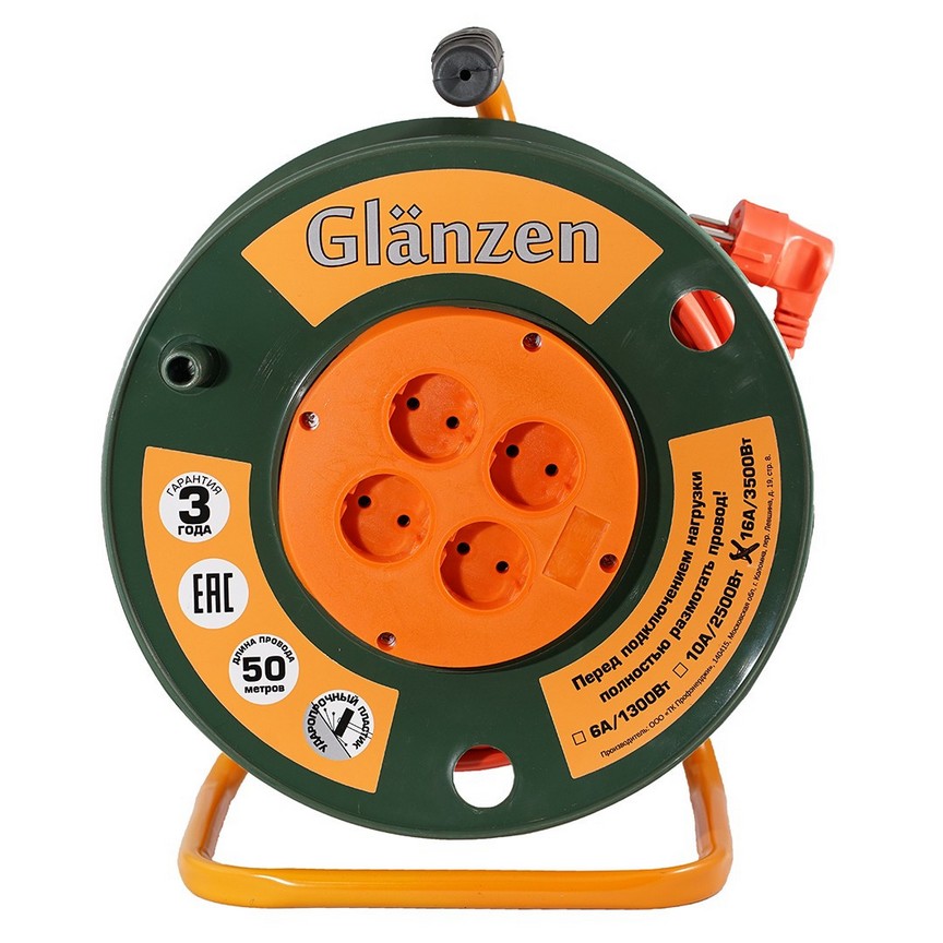 Катушкадағы қуат ұзартқыш сымы GLANZEN 4 ұялы ПВС 2*2,5 арт. EB-50-008