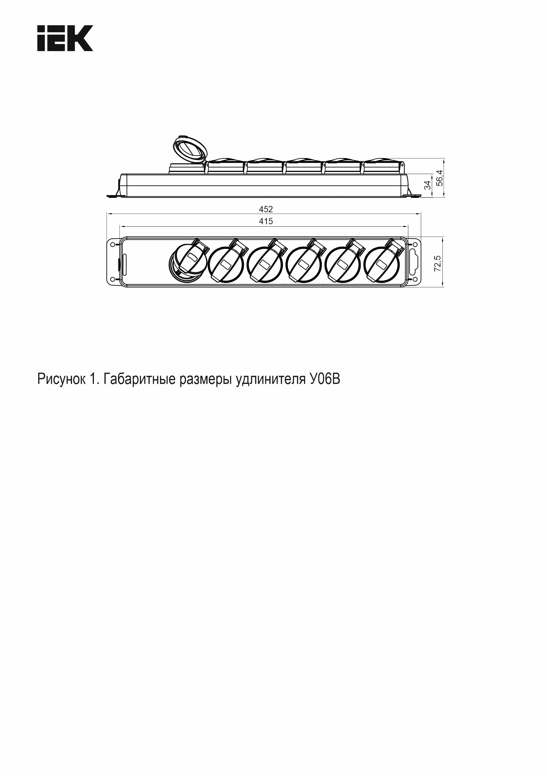 Ұзартқыш У06В 6 ұяшықты, қорғаныс қақпақтарымен IP44 жерге тұйықталған 3х1мм2 16А/250В 5м IEK