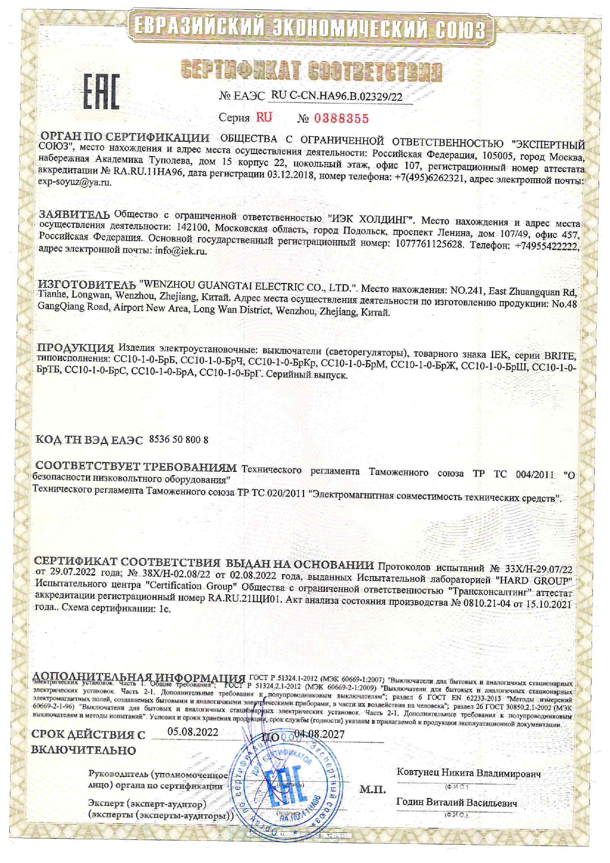 BRITE Айналмалы-итермелі жарық реттегіші 600 Вт CC10-1-0- БрТБ қара қола ИЭК