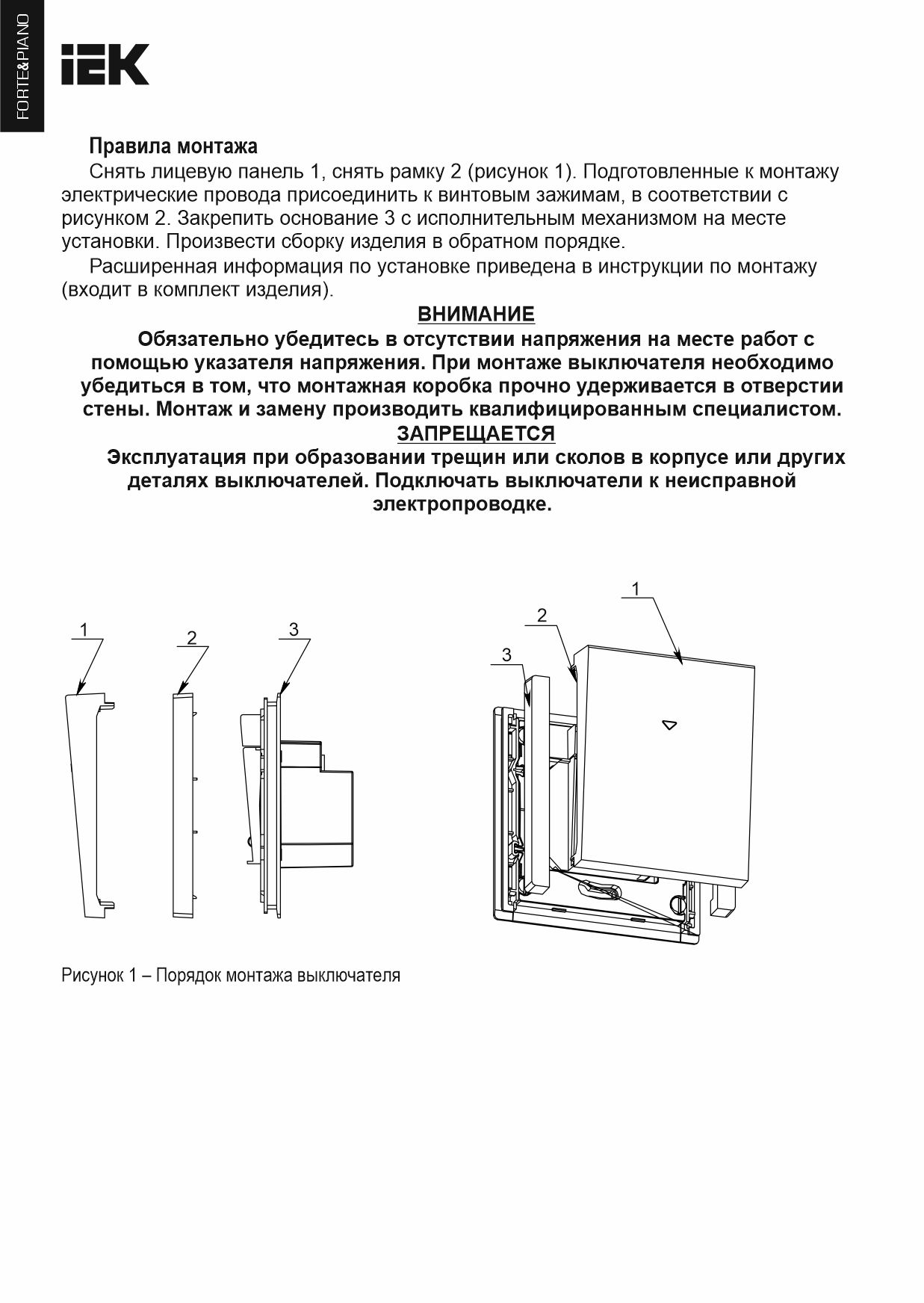 FORTE&PIANO Ажыратқыш, карточкалық 30А FP443 ваниль IEK