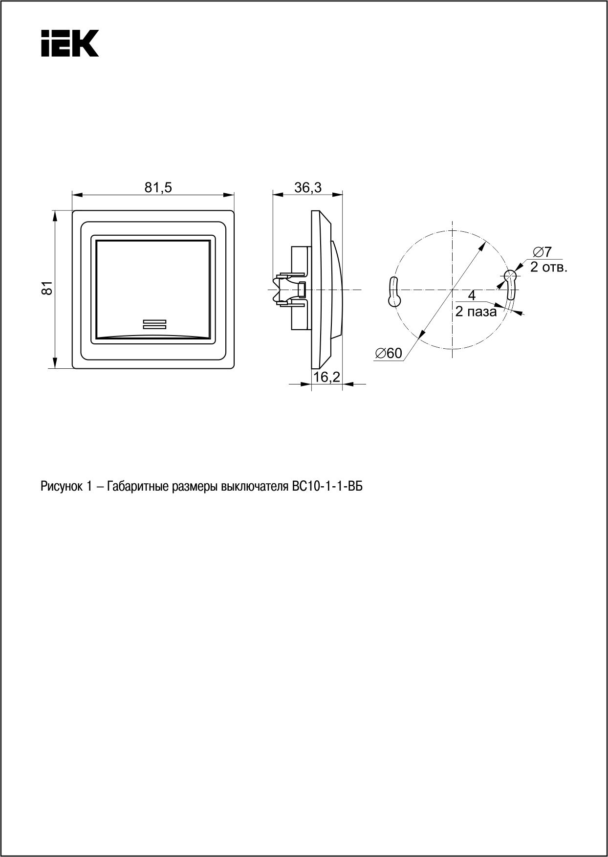 Ажыратқыш 1-пернелі ВС 10-1-1-ВБ индикатормен 10А ВЕГА (ақ) ИЭК