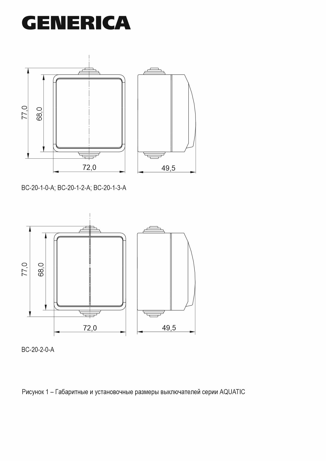 Ажыратқыш 1-пернелі ВС-20-1-0-A 1 ашық орнату 10А IP54 AQUATIC ИЭК