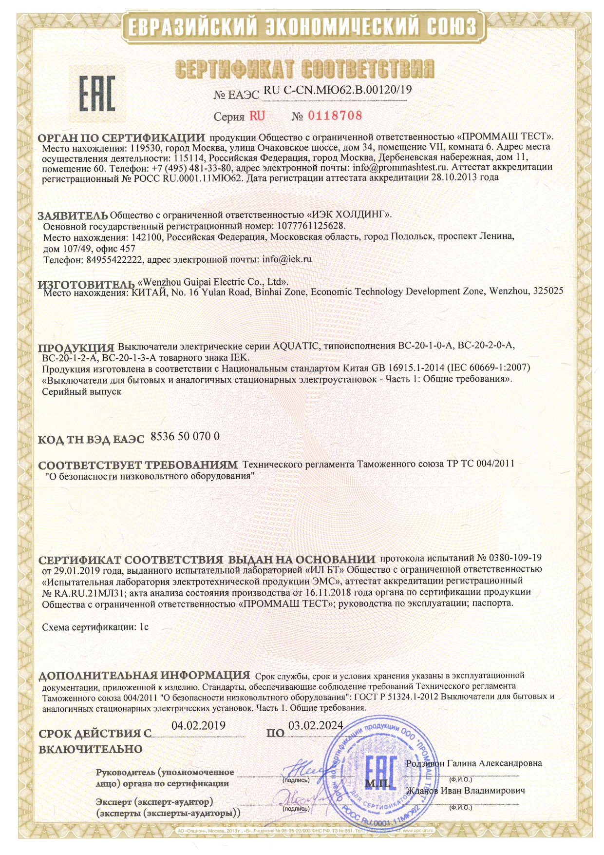 Ажыратқыш 1-пернелі ВС-20-1-2-A для ашық орнату өтпелі 10А IP54 AQUATIC ИЭК