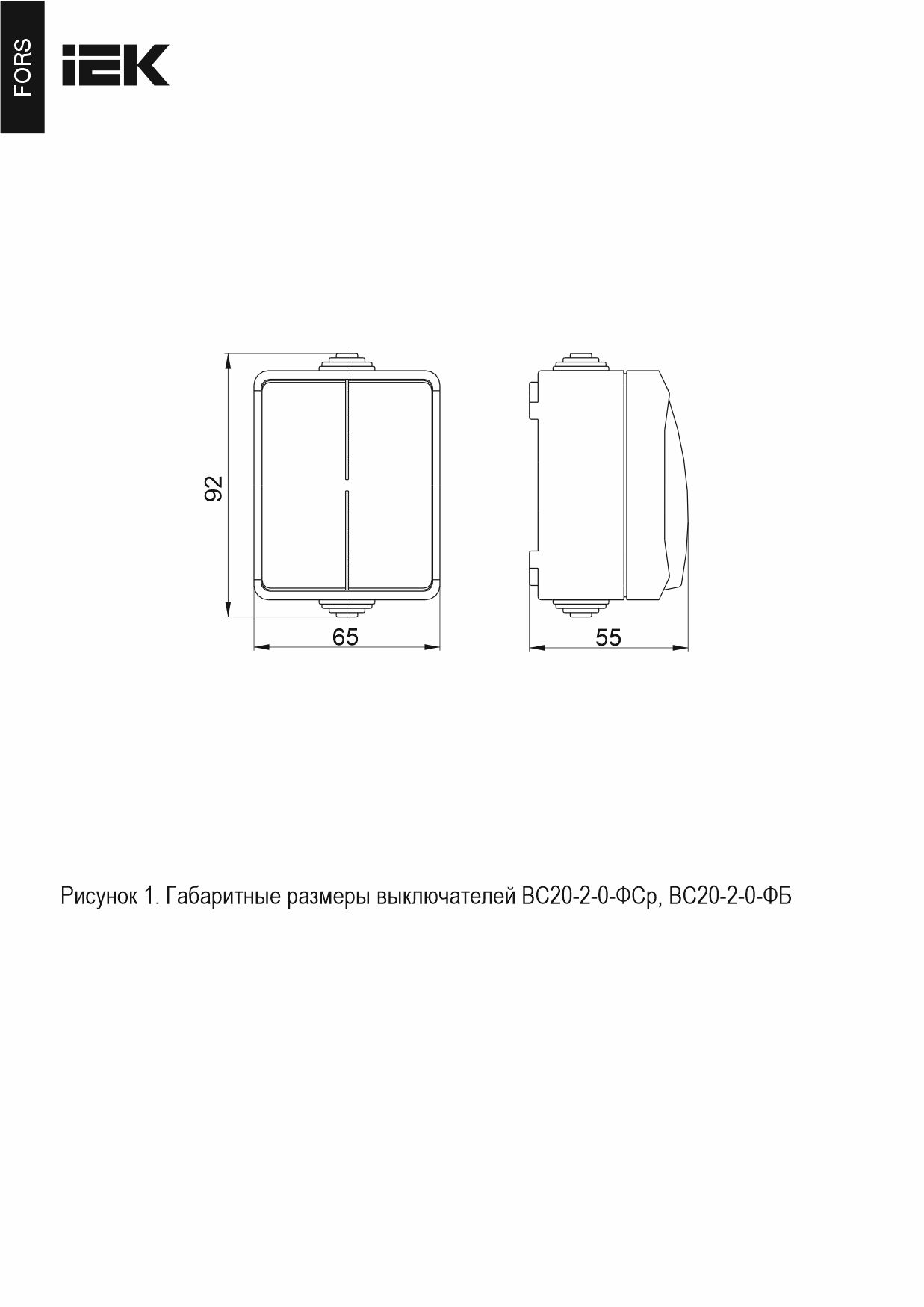 Ажыратқыш ВС20-2-0-ФСр 2-пернелі ашық орнату ФОРС 10А IP54 сұр IEK