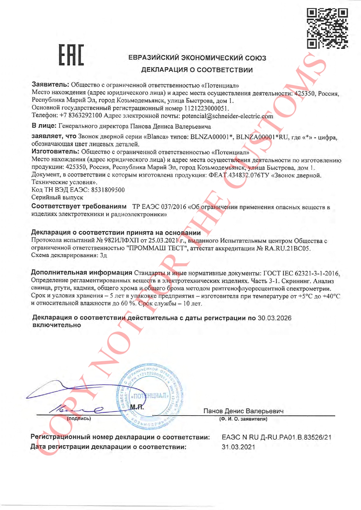 Сымды қоңырау О/У, ақ /BLNZA000011/