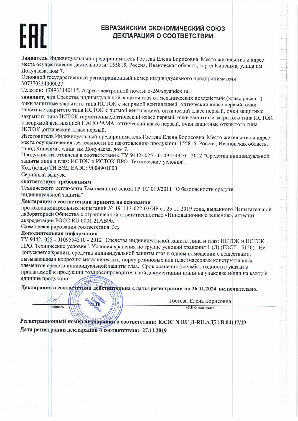 Ашық қорғаныс көзілдіріктер О35 ВИЗИОН (2С-1,2 РС) (13511)