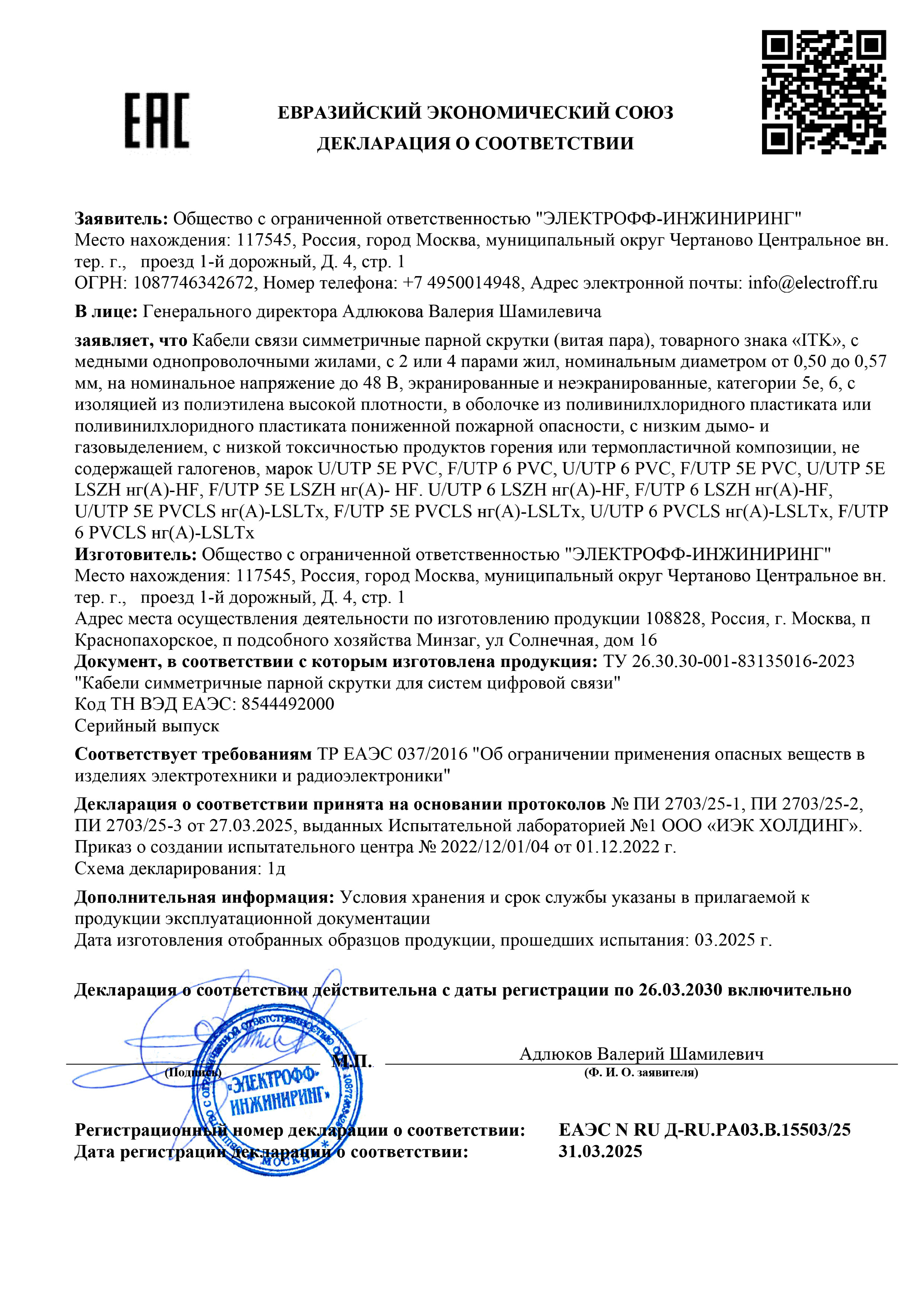 ITK Есулі қосақ U/UTP кат.5E 4х2х0,52 solid PVC сұр (305м) РФ/Т ИЭК