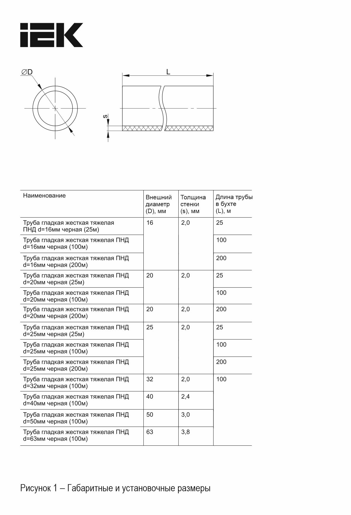 Құбыр, тегіс, қатты, ауыр ПНД d=25мм қара (100м) IEK