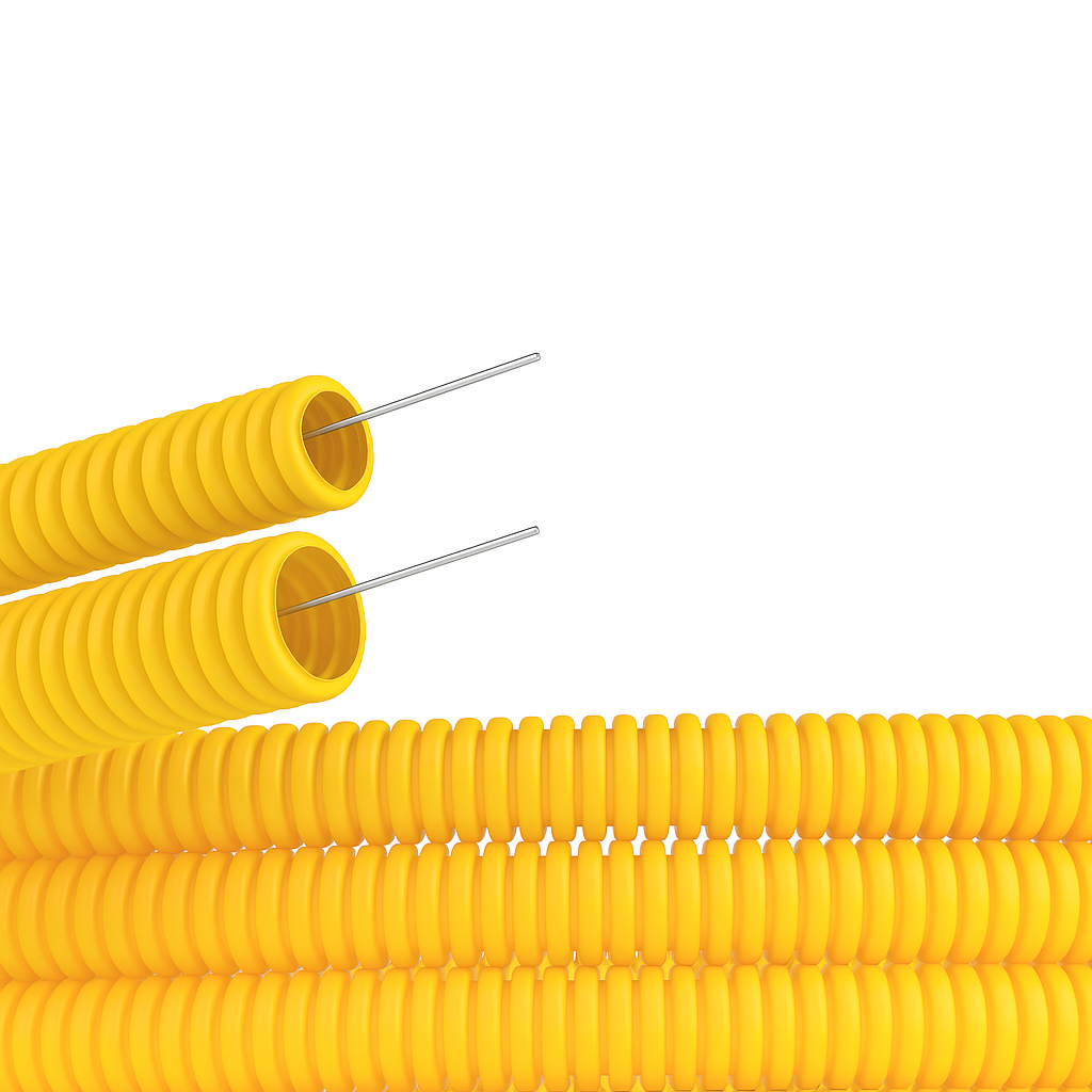 Гофрленген құбыр ПВХ икемді, жеңіл d20мм тарту, сары (қаптама 100м) DKC