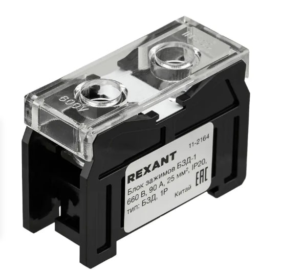 Қысқыш блогы, клеммалы БЗД 1-полюсті 25 мм2 90A, DIN-рейкаға REXANT, 11-2164