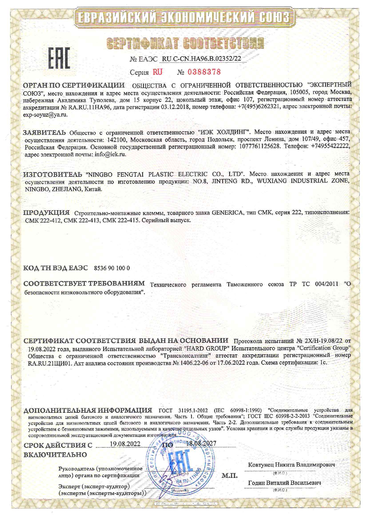 Құрылыс-монтаждау клеммасы СМК 222-413 GENERICA ИЭК