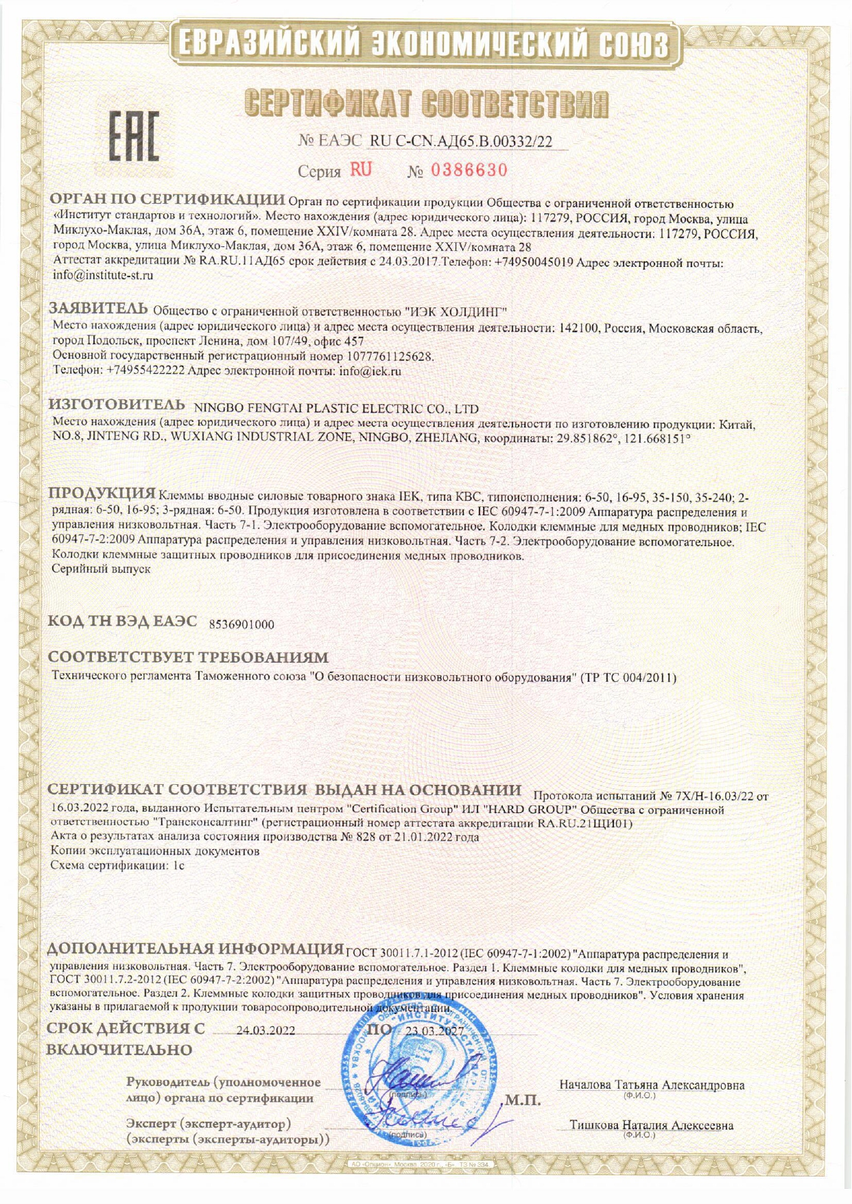 Күштік кірме клеммасы КВС 6-50 шаршы мм. көк ИЭК