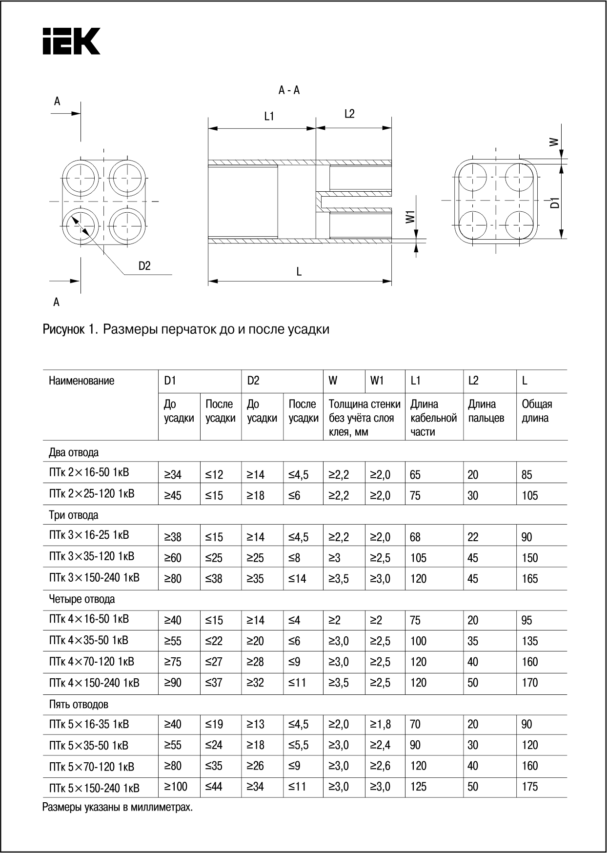 Жылуға төзімді қолғап ПТк 5х16-35 1кВ IEK