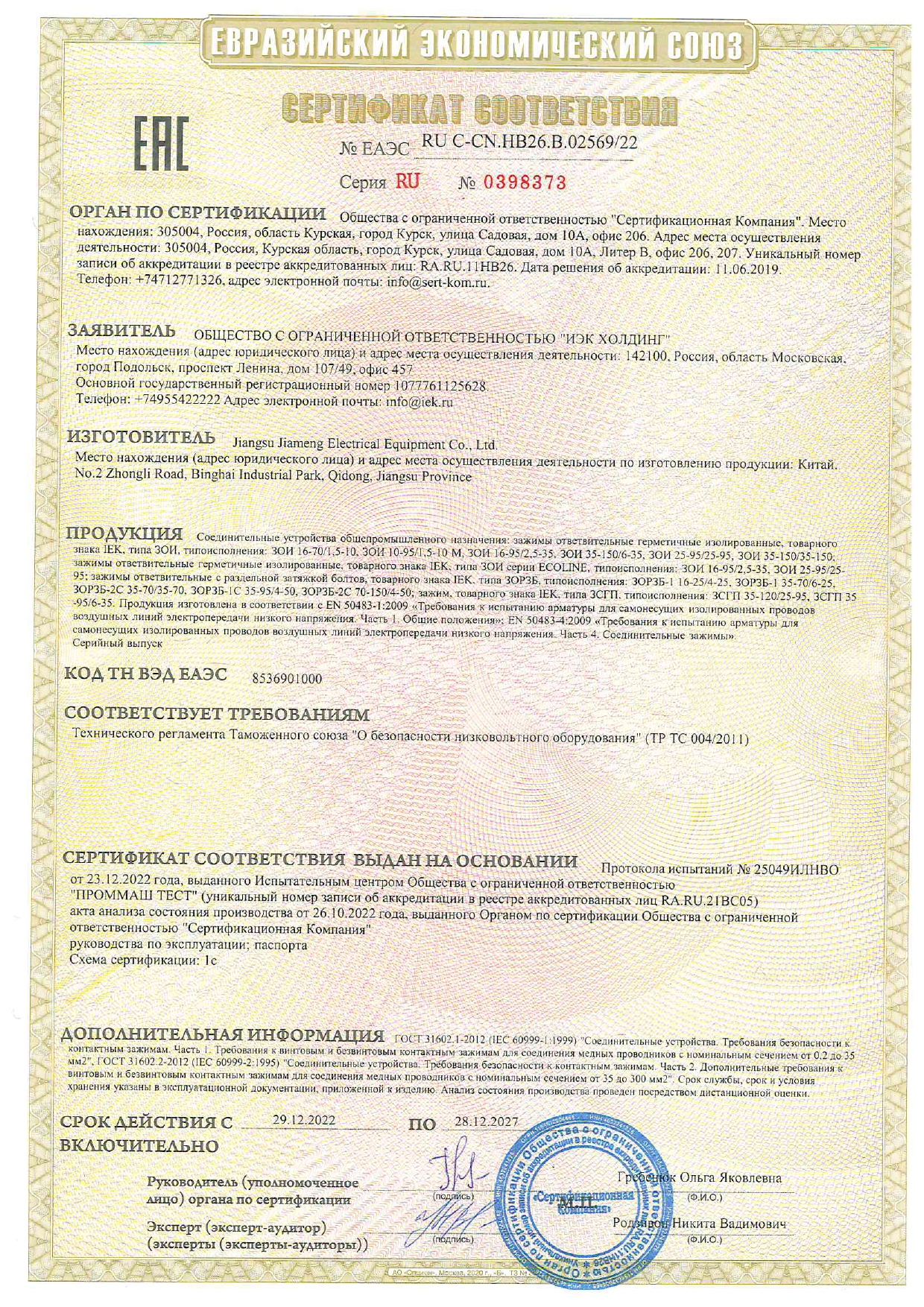 Оқшаулауған тармақ қысқышы ЗОИ 16-95/2,5-35 ИЭК
