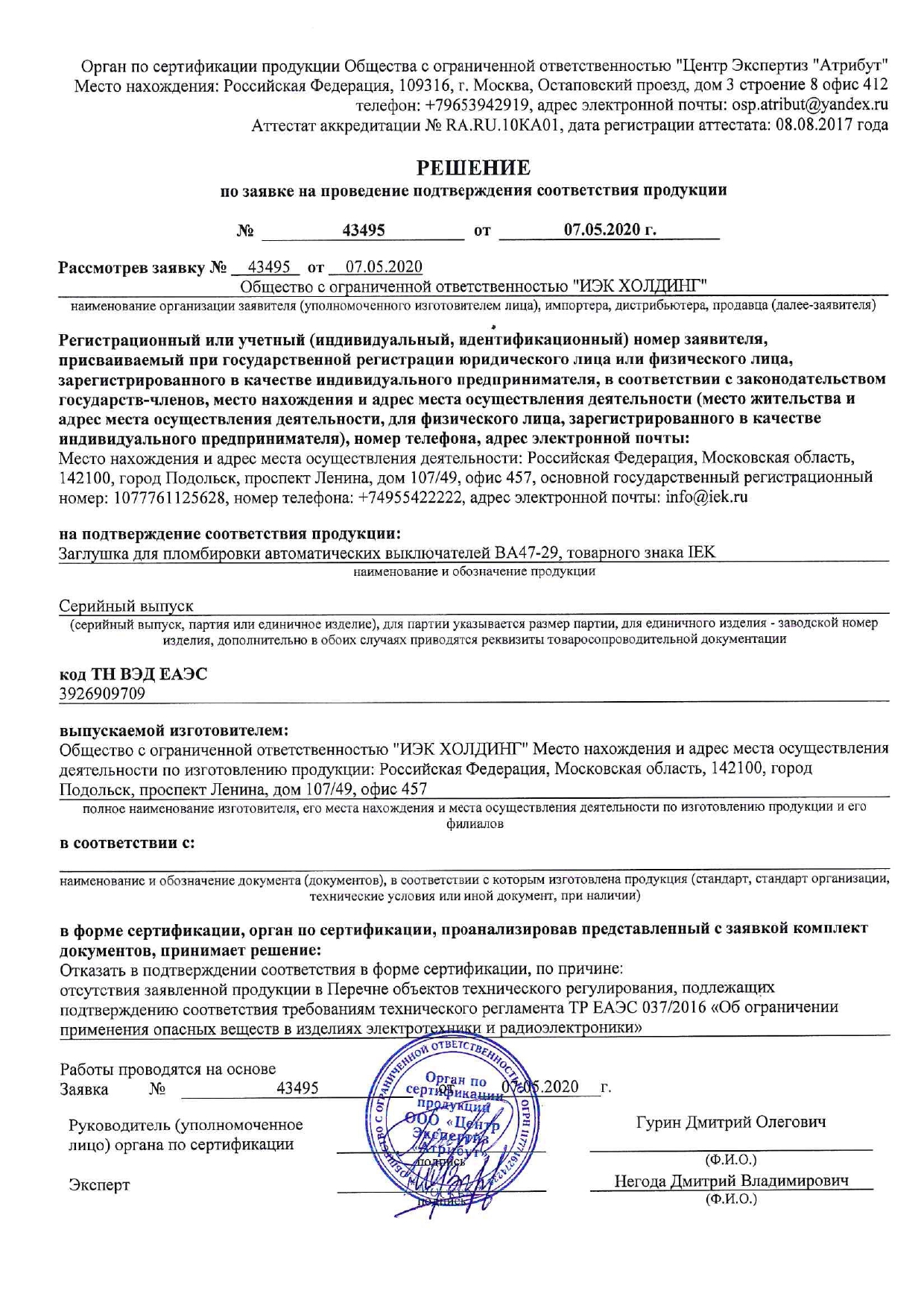 Пломболау бітеуіші ВА47-29 ИЭК