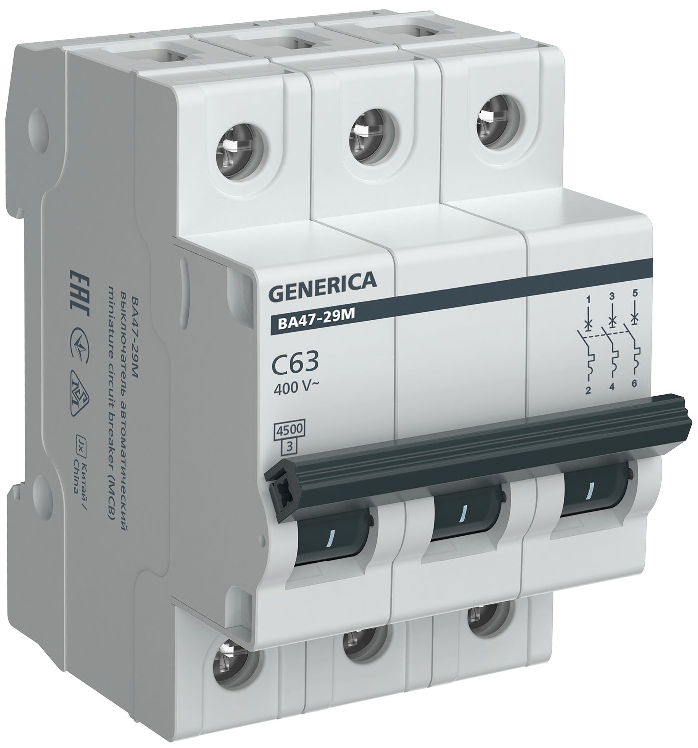 Автоматтық ажыратқыш 3Р ВА 47-29М 63А 4,5кА сипаттамасы C GENERICA (ИЭК)