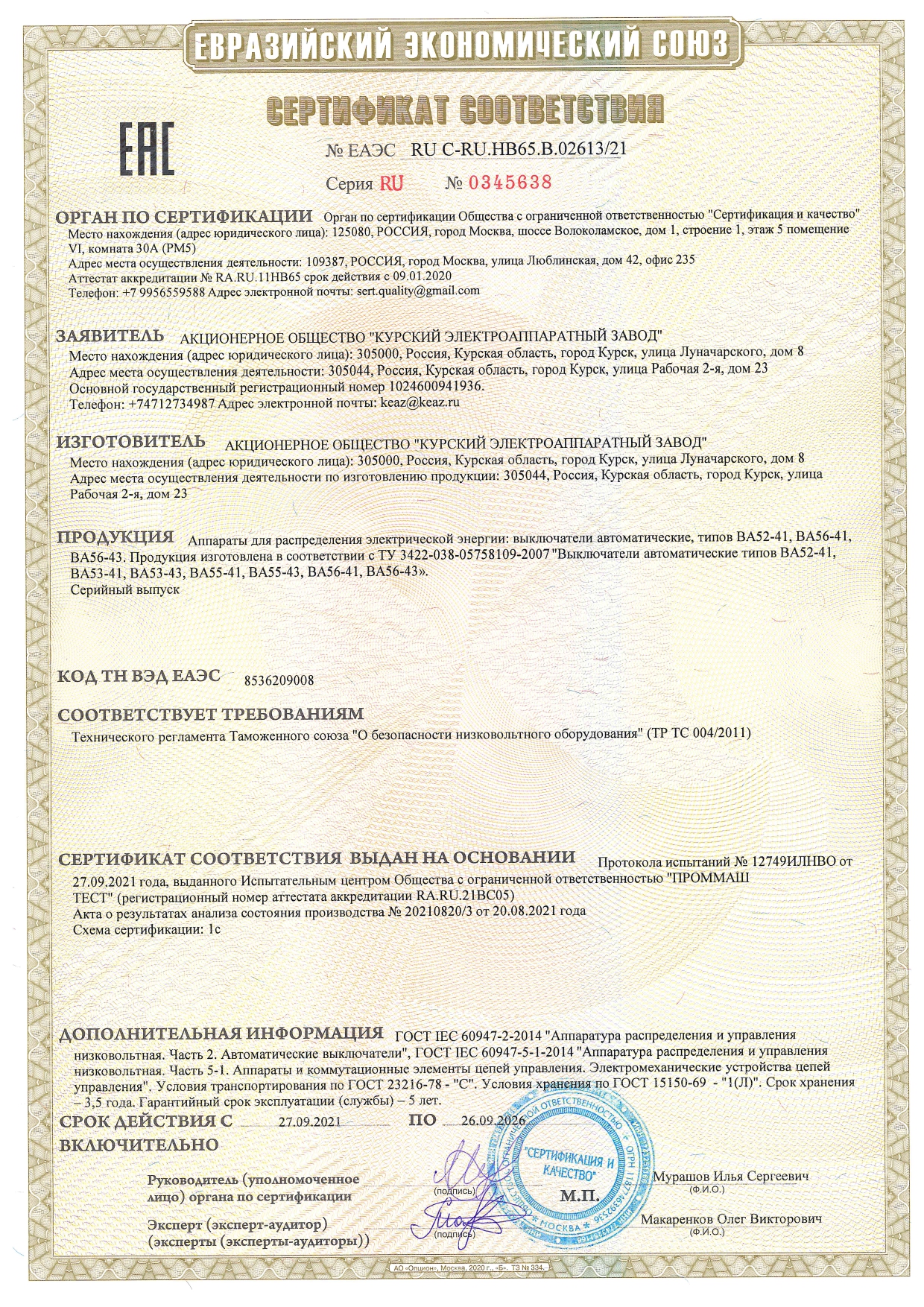 Автоматтық ажыратқыш ВА55-41-334770-1000А-690AC-НР230AC/220DC-ПЭ230AC-УХЛ3-КЭАЗ