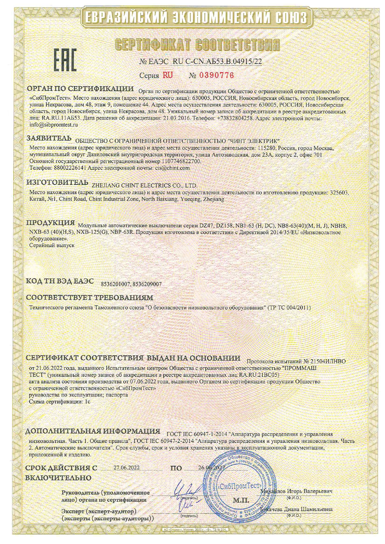 Автоматтық ажыратқыш NXB-63S 4P 40А 4.5kA сипаттама C (CHINT) 296909