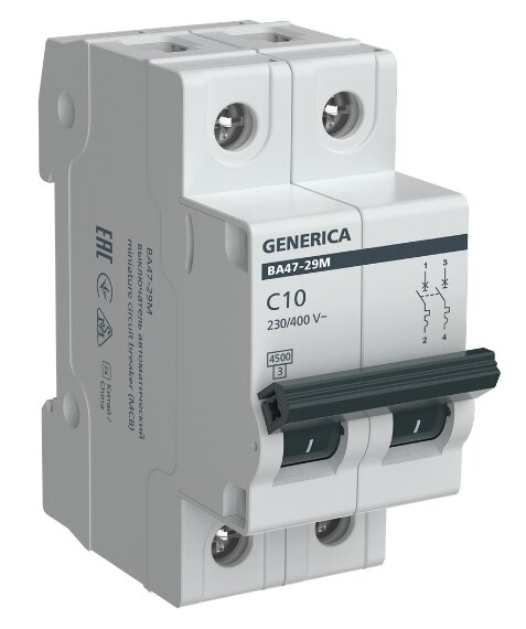 Автоматты ажыратқыш ВА47-29М 2P 10А 4,5кА C GENERICA ИЭК