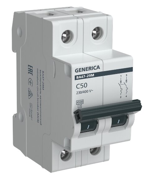 Автоматты ажыратқыш ВА47-29М 2P 50А 4,5кА C GENERICA ИЭК