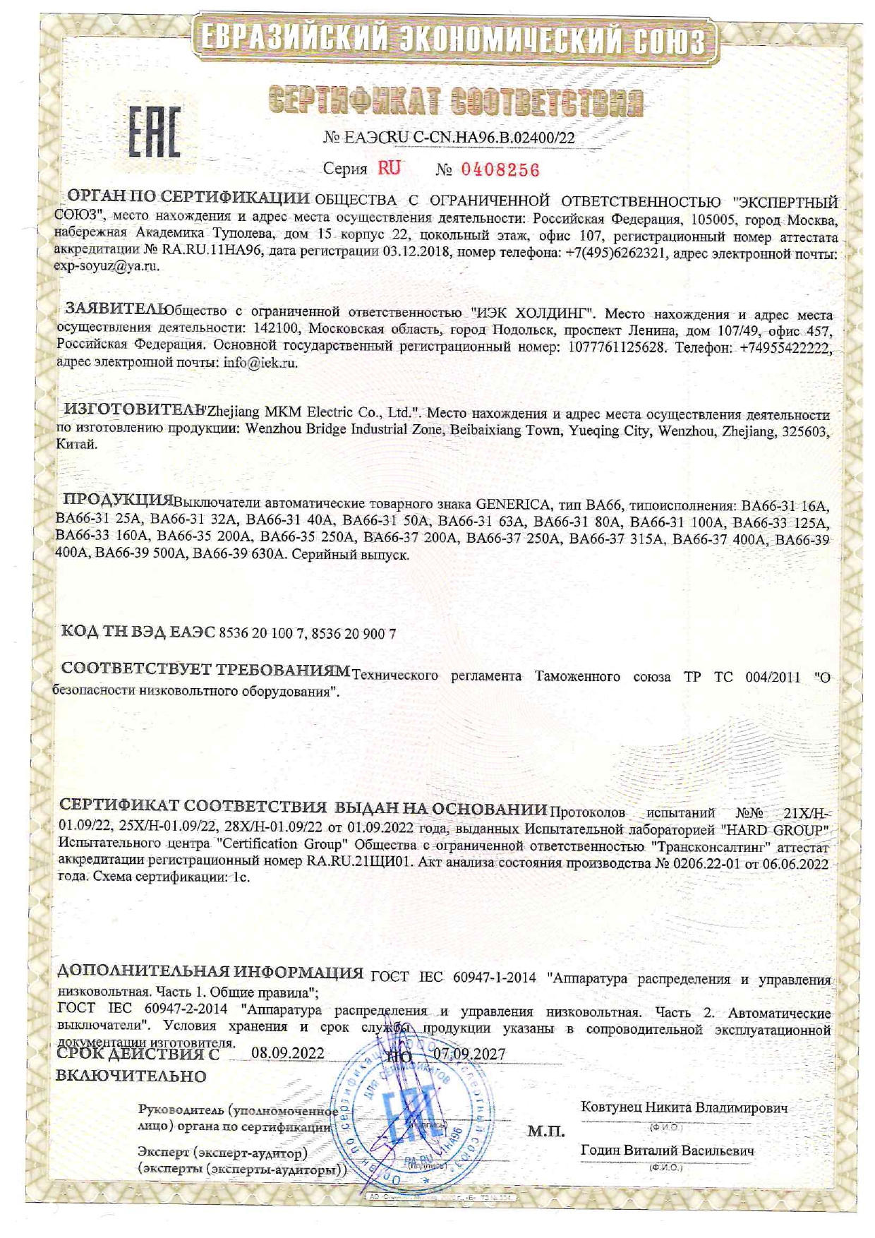 Автоматтық ажыратқыш ВА66-31 3Р 100А 18кА GENERICA ИЭК
