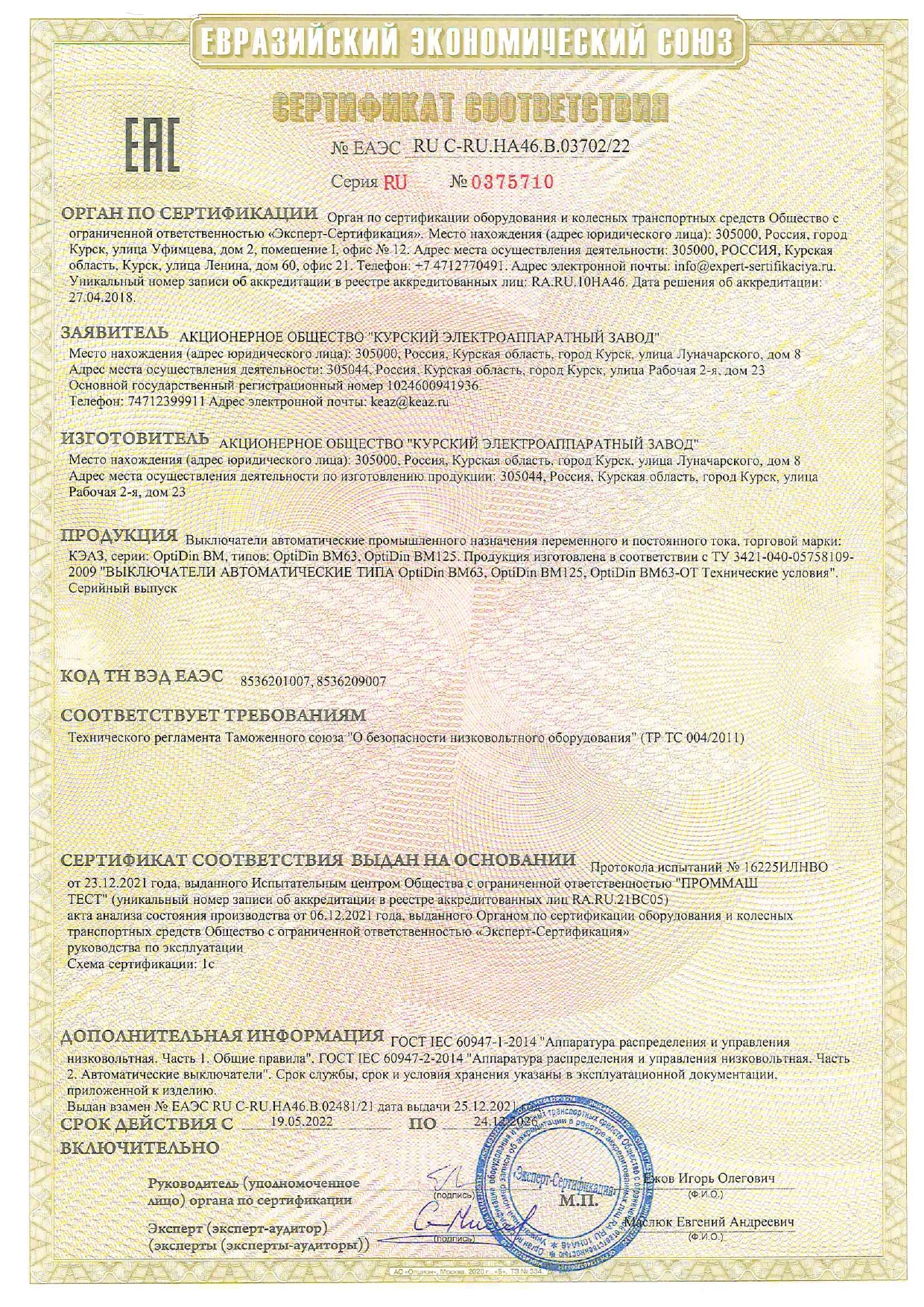 Модульді автоматтық ажыратқыш OptiDin ВМ63-2C4-DC-УХЛ3 (Жаңа) КЭАЗ