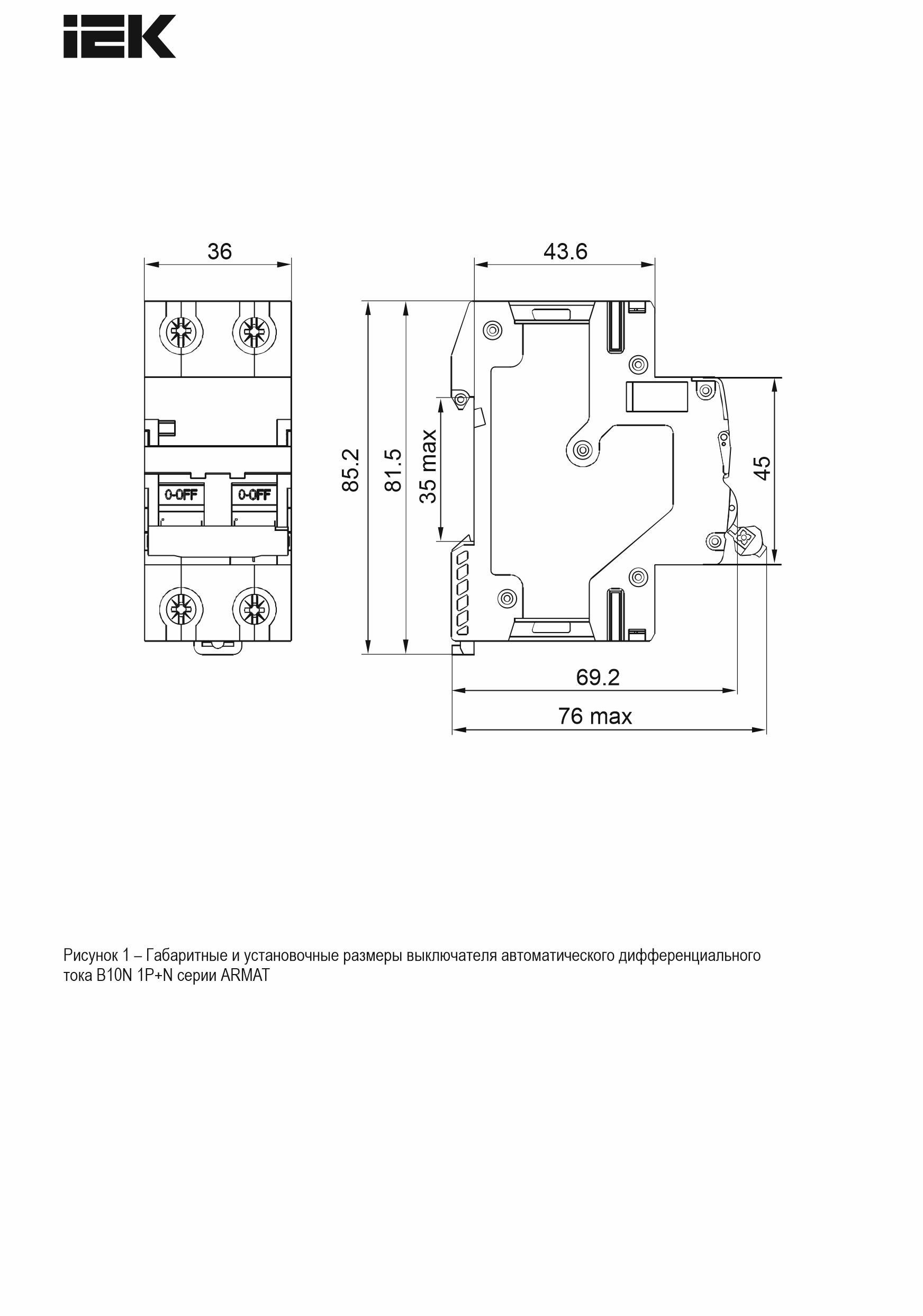 ARMAT Дифференциалды тоқ автоматты ажыратқышы B10N 1P+NP C20 30мА типі A (36мм) IEK
