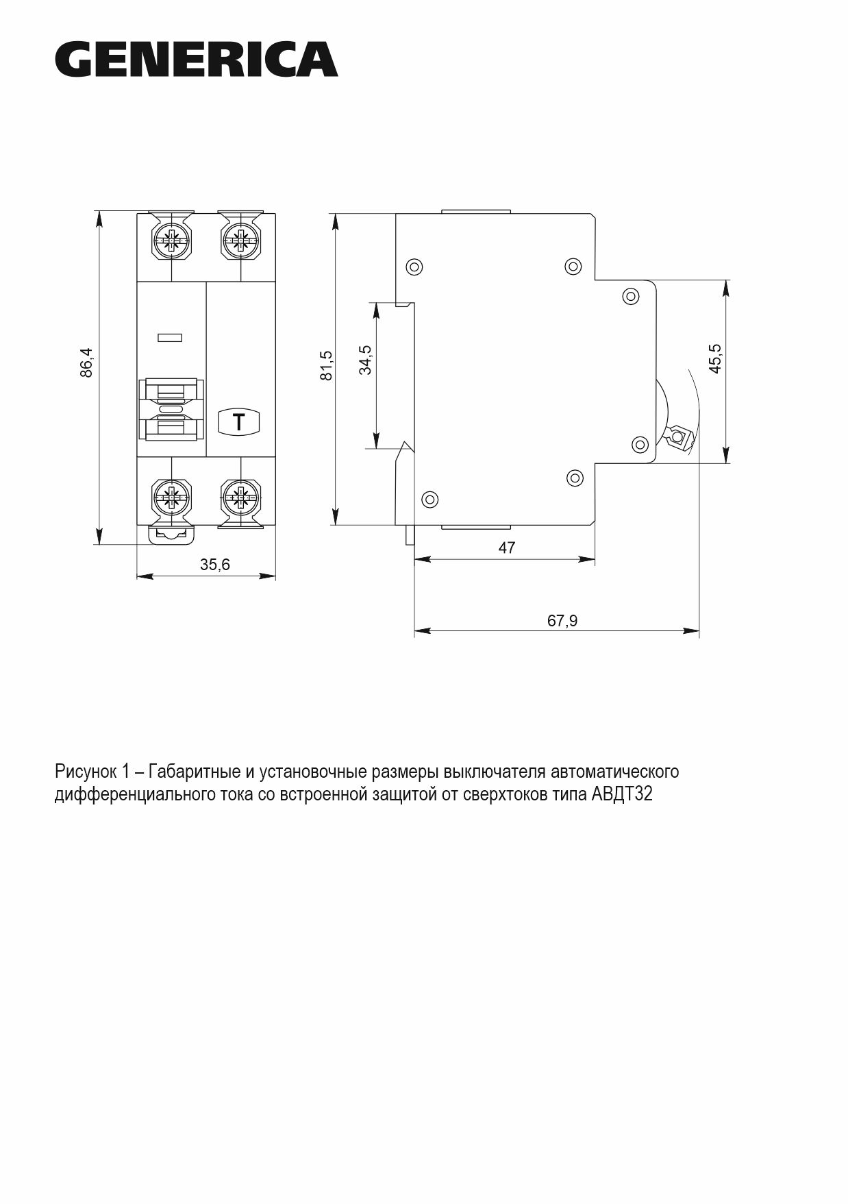 АВДТ 32 С20 GENERICA ИЭК дифференциалды тоқтың автоматты ажыратқышы