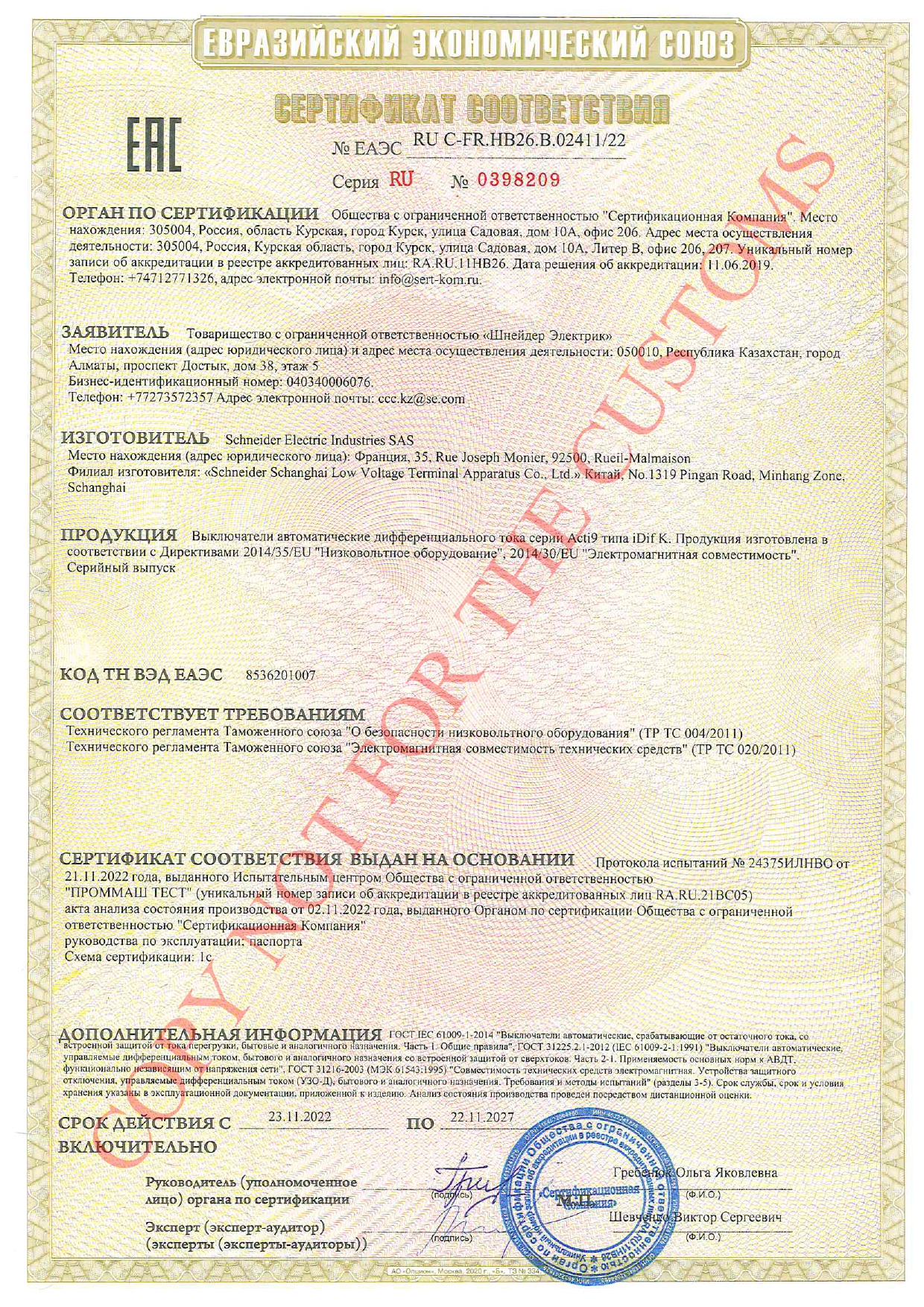 iDifK 6KA 16A C 30MA AC /A9D63616/ дифференциалды электрондық автомат
