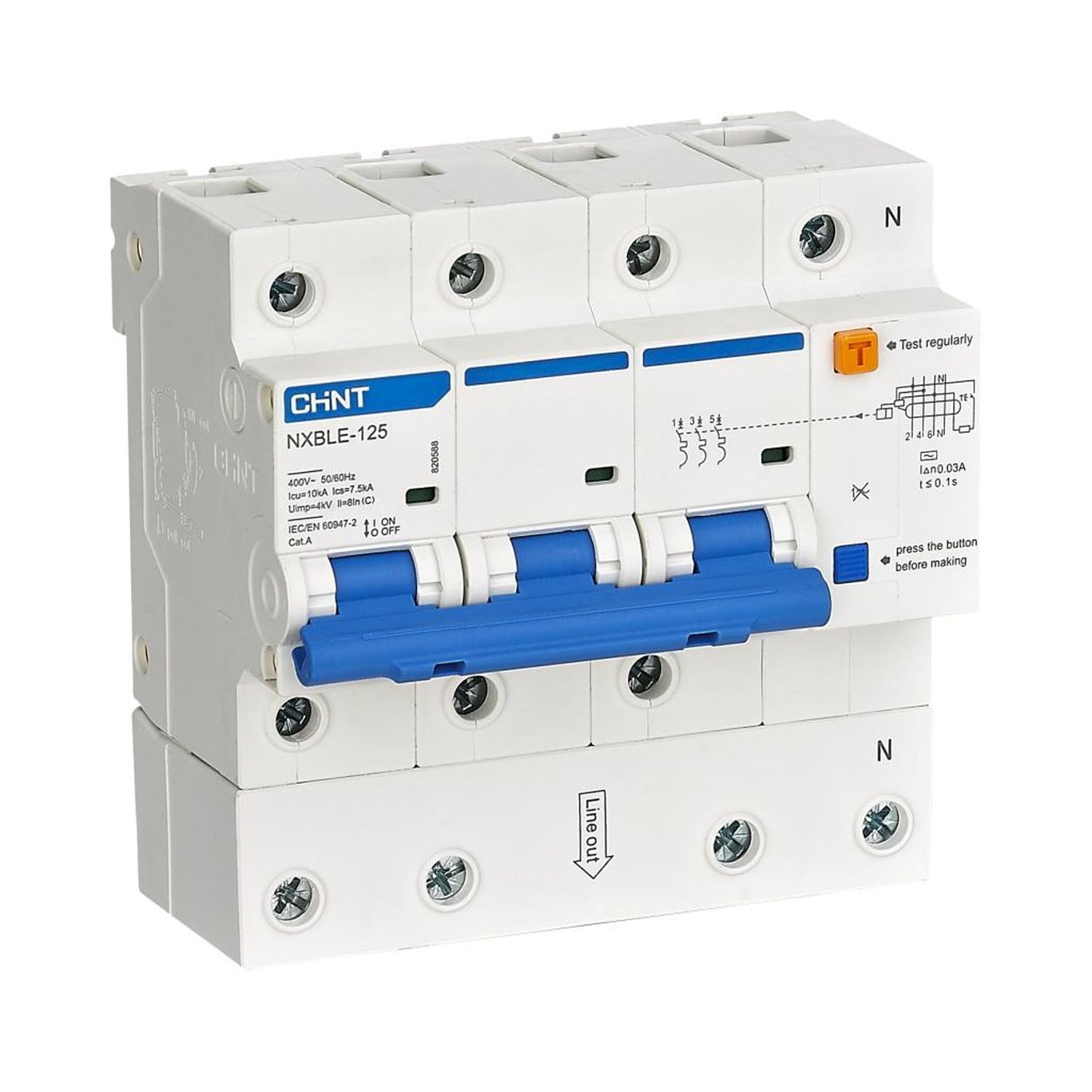 Дифференциалды автомат NXBLE-125 3P+N 80A, х-ка C 30mA электронды тип AС 10kA (CHINT)
